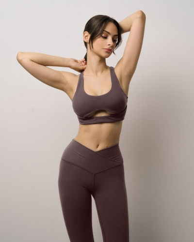 ПОЛИЭСТЕР 70%; ЭЛАСТАН 30%Топ спортивный с рельефными швами по груди /v-образным вырезом .На плечеках двойные завязки -спагетти переплетенные на спине.