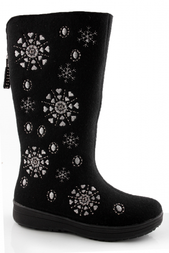 Практичные и удобные сапоги с округлым мыском на устойчивой рельефной подошве. Украшена декоративными прострочками и цветной аппликацией. Застежка на молнию. Теплая стелька и подкладка согреют ноги в холодную погоду и обеспечат комфорт при использовании.