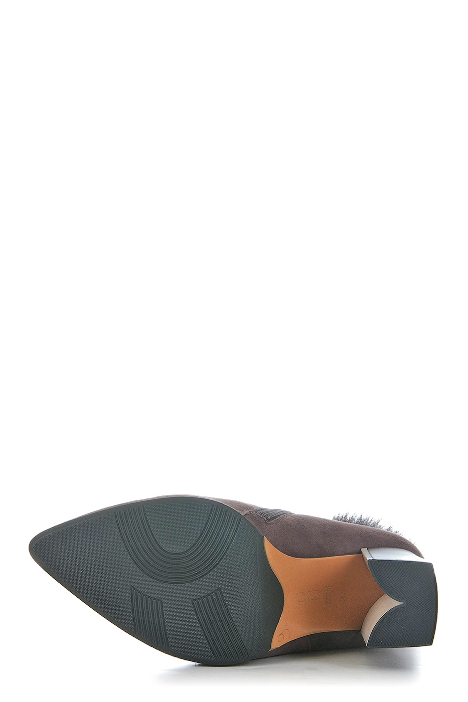 Ботинки зимние выполнены из велюра. Внутренняя отделка и стелька из натурального меха. Детали: сбоку молния, декоративные элементы.