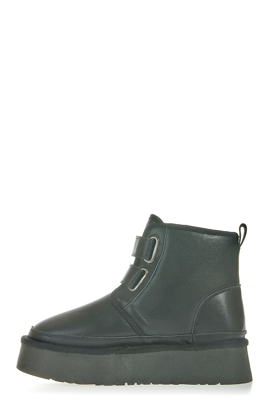 Унты выполнены из натуральной замши, верх оформлен объемными швами. Задник укреплен вставкой и дополнен логотипом бренда. Внутренняя отделка из натуральной шерсти.