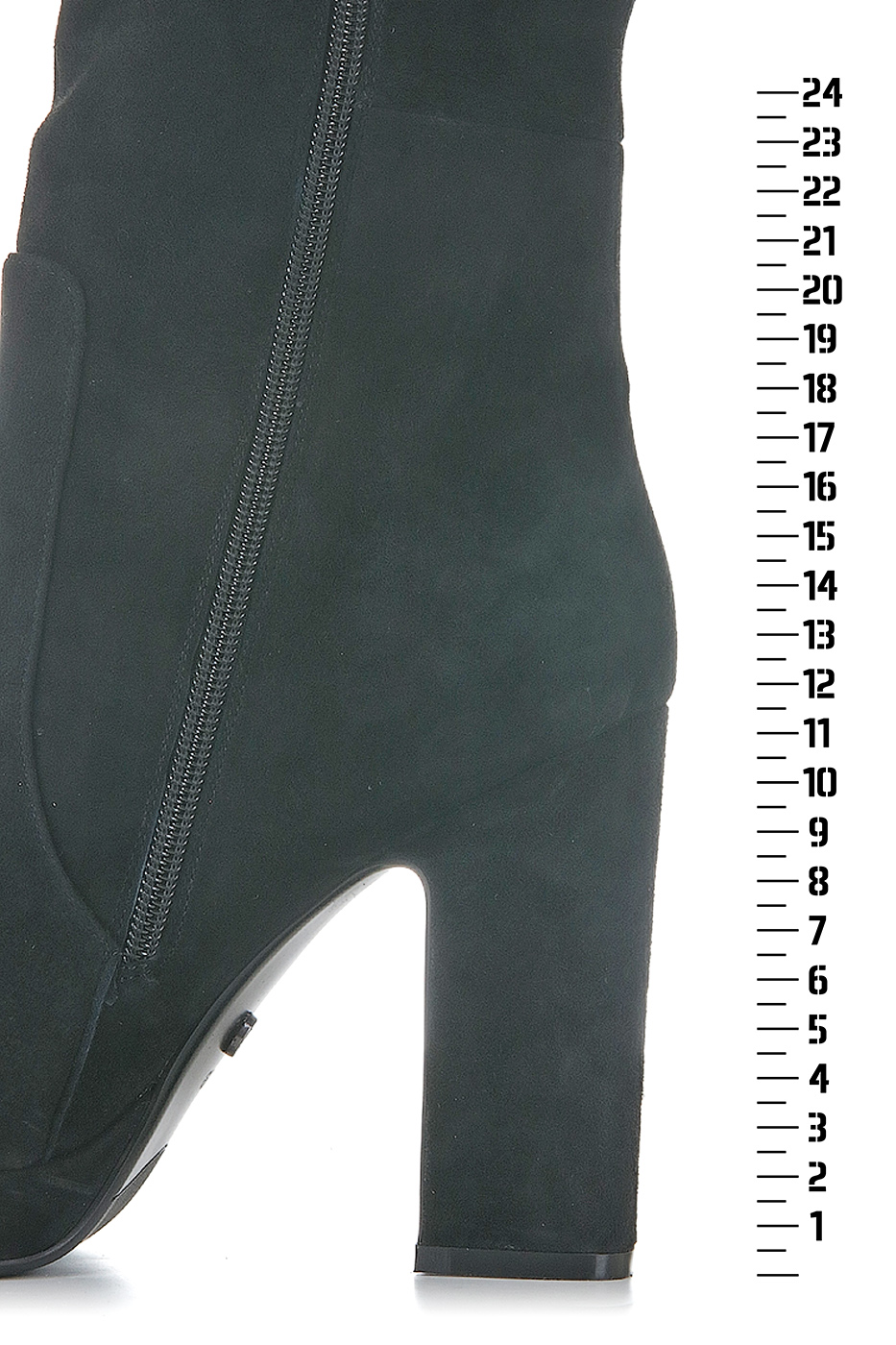 Сапоги зимние выполнены из велюра. Внутренняя отделка и стелька из натуральный мех. Детали: сбоку молния, декоративные элементы.