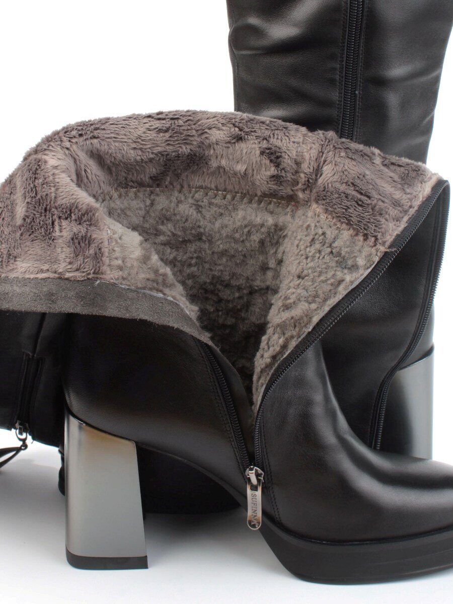 02-B6237-6051Z-6BM-1 BLACK Сапоги зимние женские (натуральная кожа, натуральный мех)