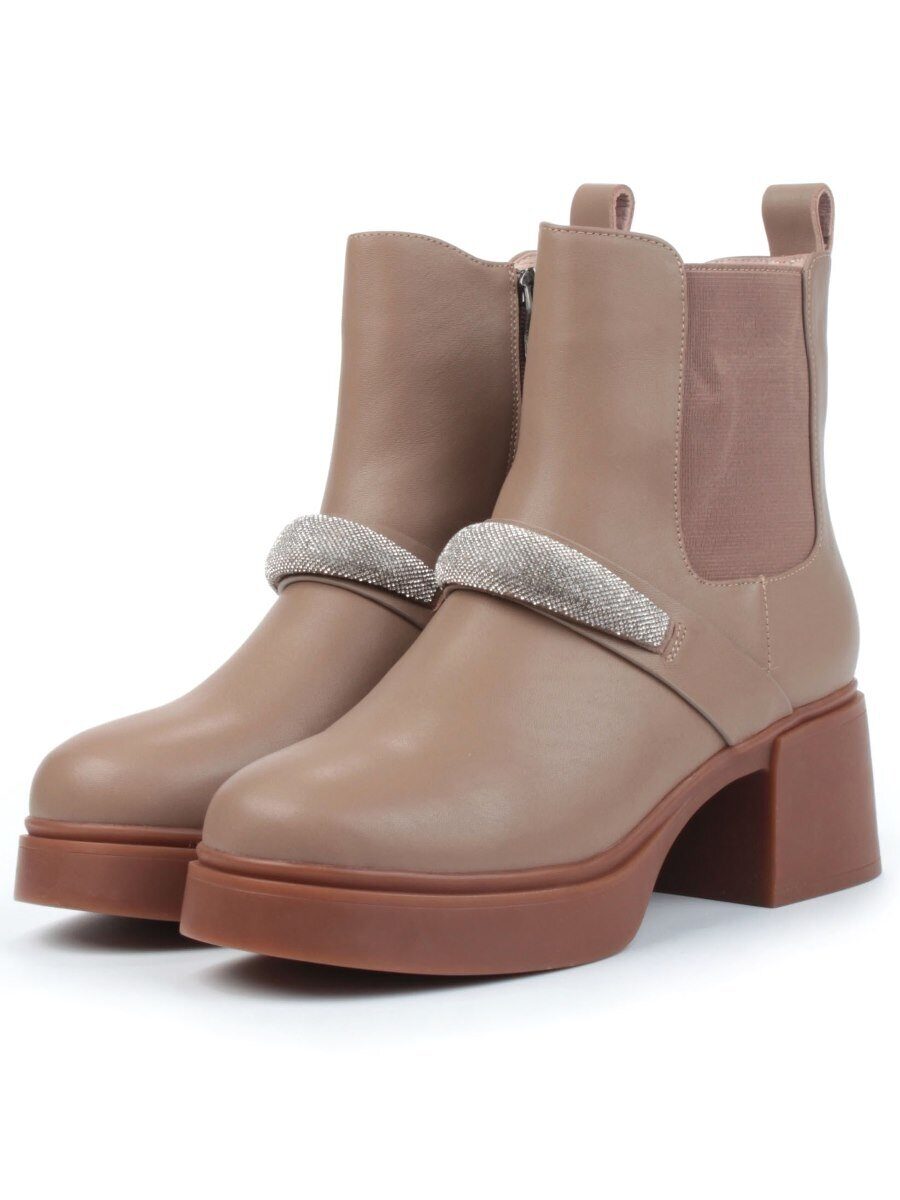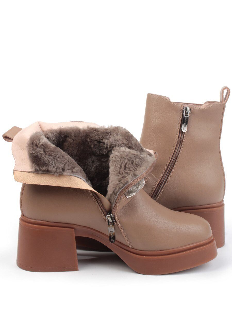 04-M904A 987-31M-2 DK. BEIGE Ботинки зимние женские (натуральная кожа, натуральный мех)