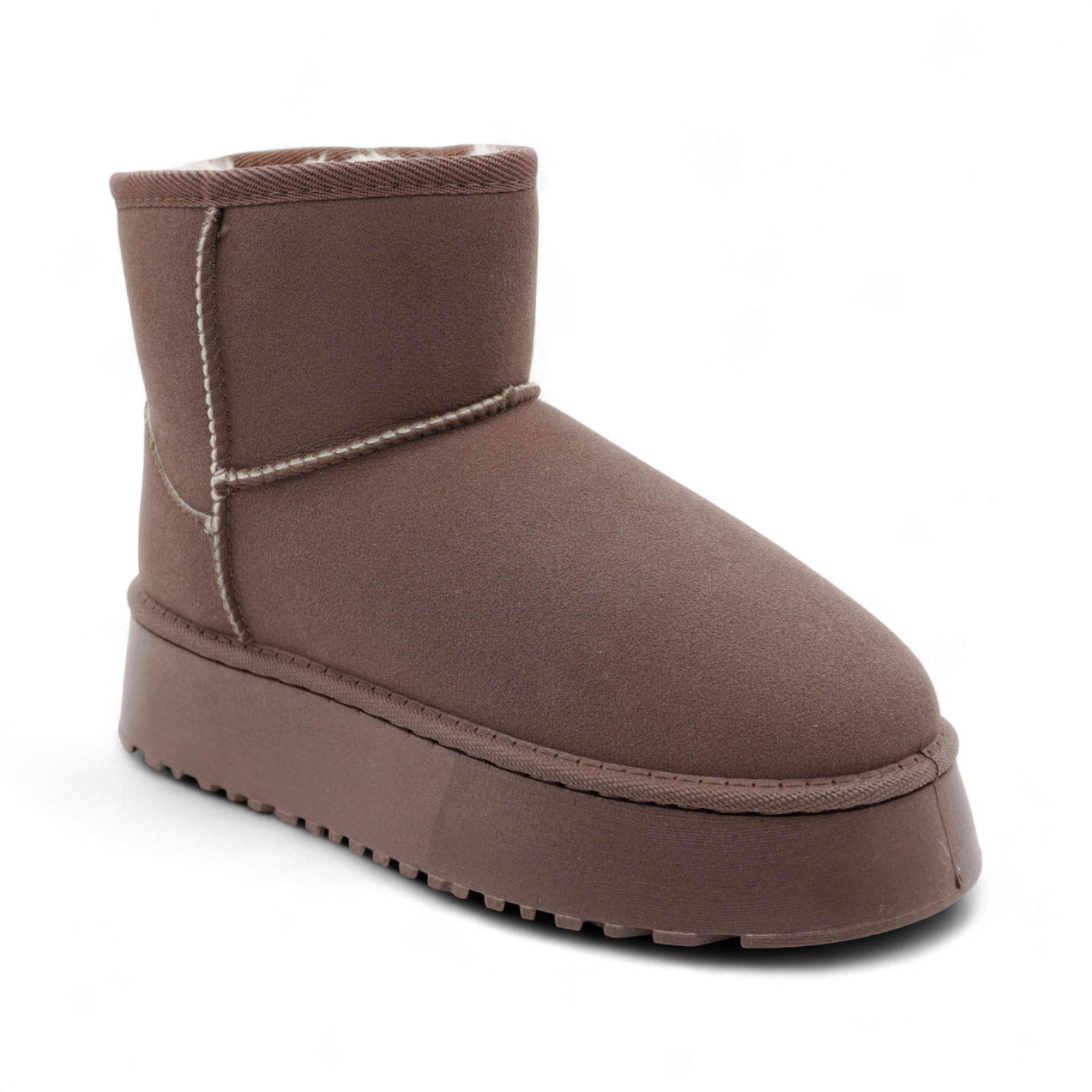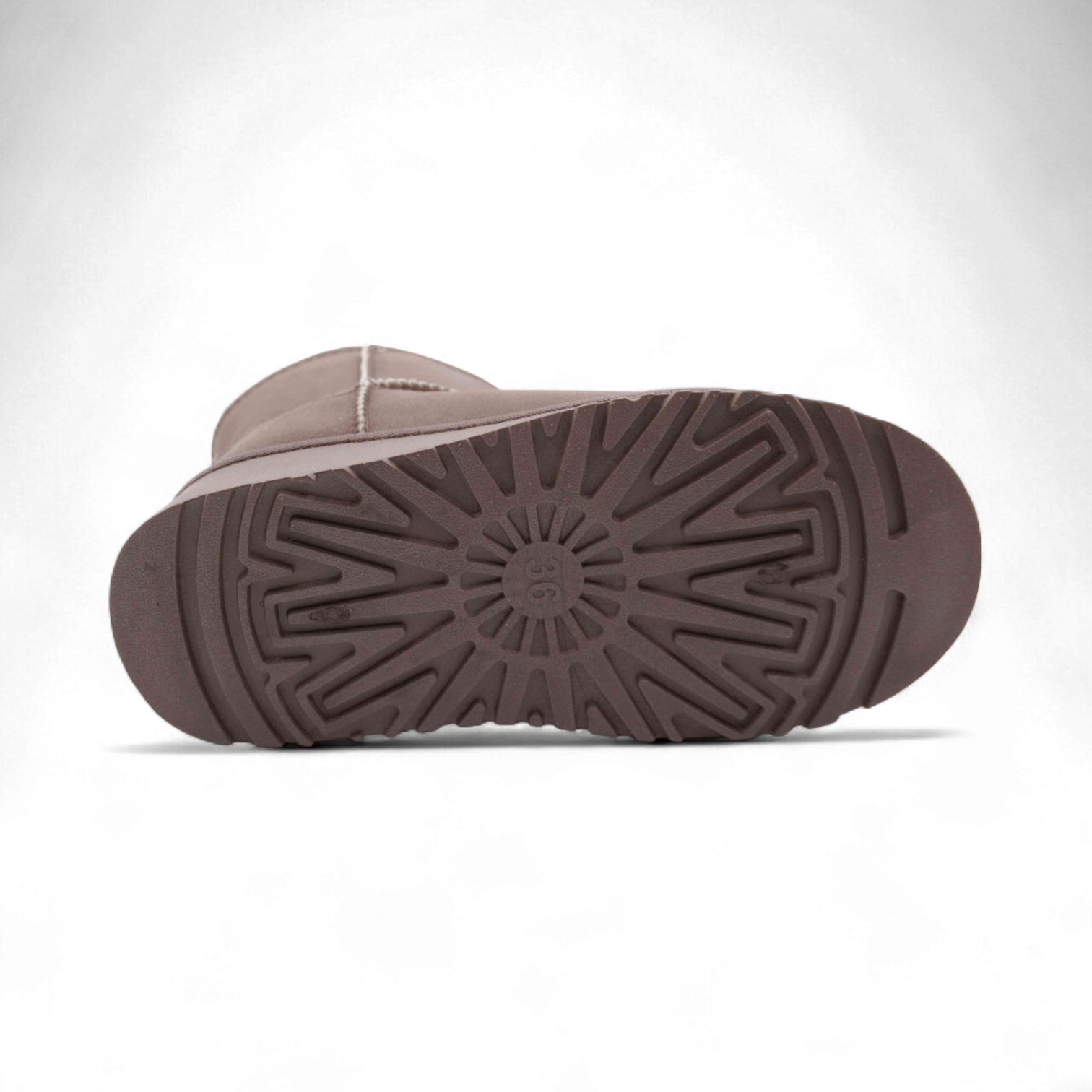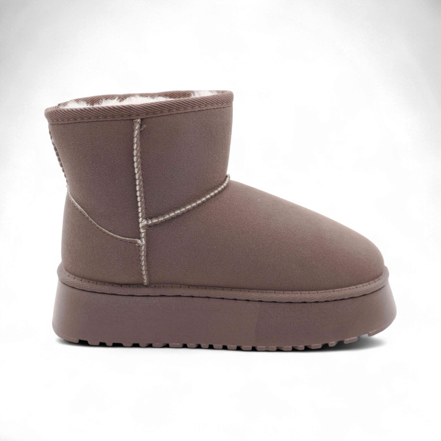 Материал: угги выполнены из искусственного замша, который отличается своей прочностью и стильным внешним видом. Внутренняя часть обуви утеплена мягким мехом, что гарантирует комфорт и тепло даже в самые холодные дни.