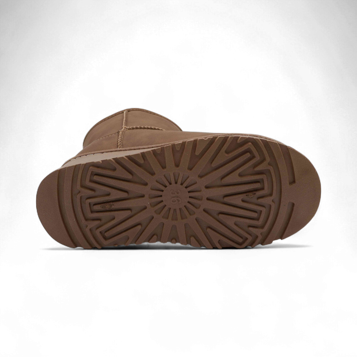 Материал: угги выполнены из искусственной кожи, которая отличается своей прочностью и стильным внешним видом. Внутренняя часть обуви утеплена мягким мехом, что гарантирует комфорт и тепло даже в самые холодные дни.