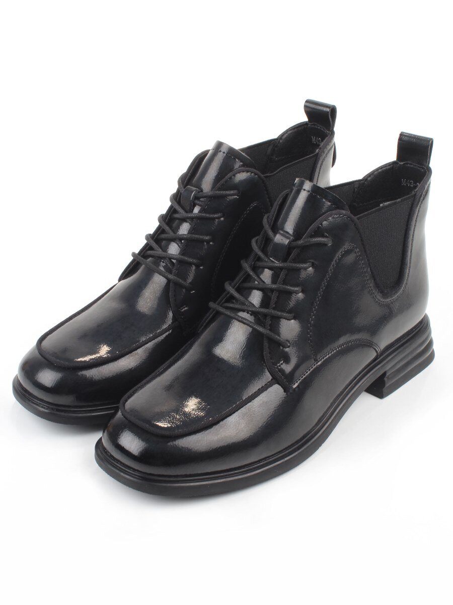 01-M43-22 BLACK Ботинки демисезонные женские (натуральная кожа, байка)