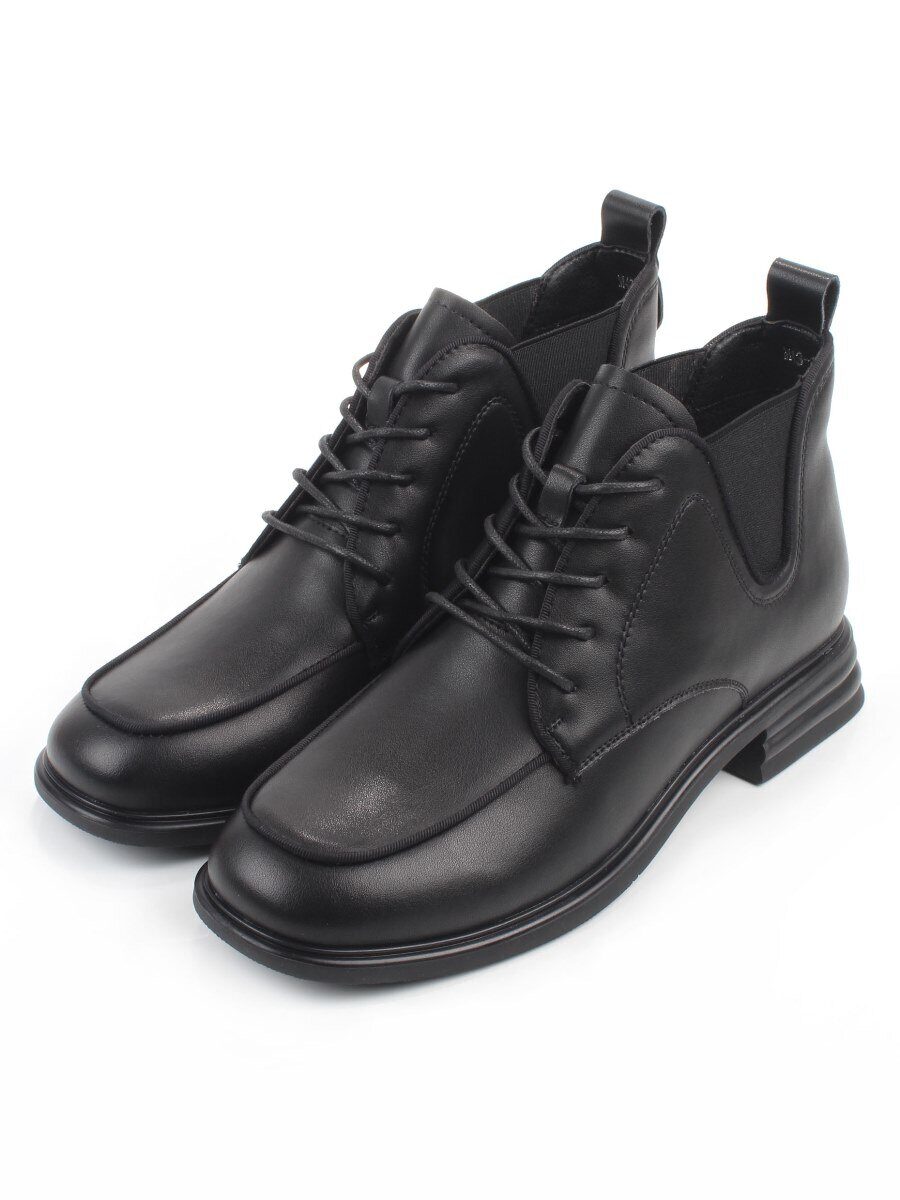 01-M43-23 BLACK Ботинки демисезонные женские (натуральная кожа, байка)