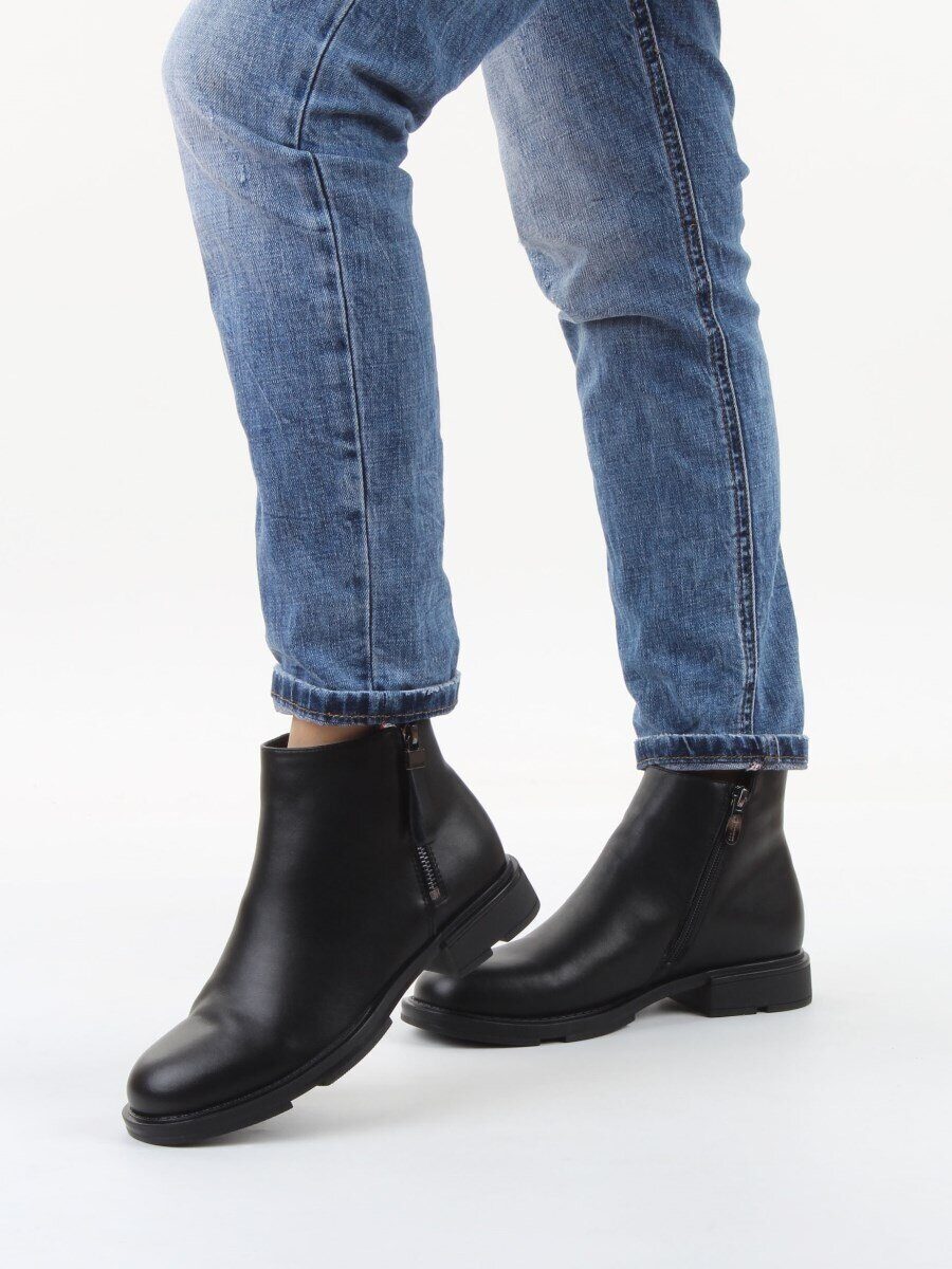 Черный Ботинки демисезонные женские (натуральная кожа, байка)
