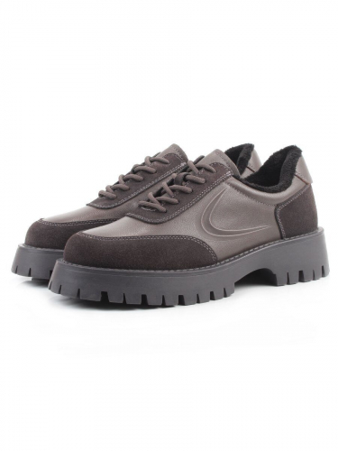 Полуботинки утепленные женские из натуральной замши и кожи с байкой
