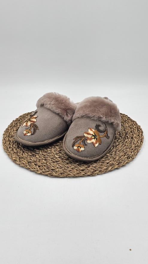 Женские тапочки из мутона с аппликацией