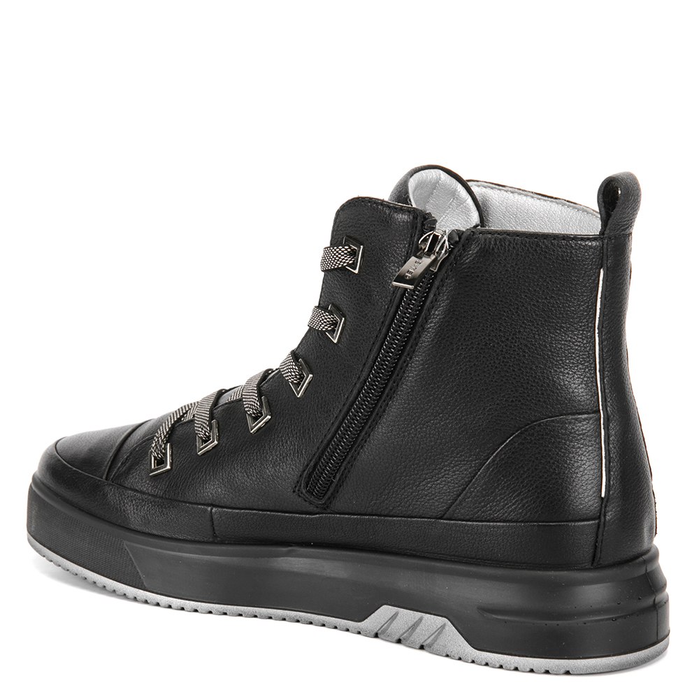 Женские зимние ботинки без каблука S-tep выполнены из натуральной кожи черного цвета, внутри — подкладка из натурального меха. Шнуровка позволяет регулировать ширину изделия. Сбоку расположена застежка на молнию. Сплошная подошва обеспечит комфорт в повседневной носке.