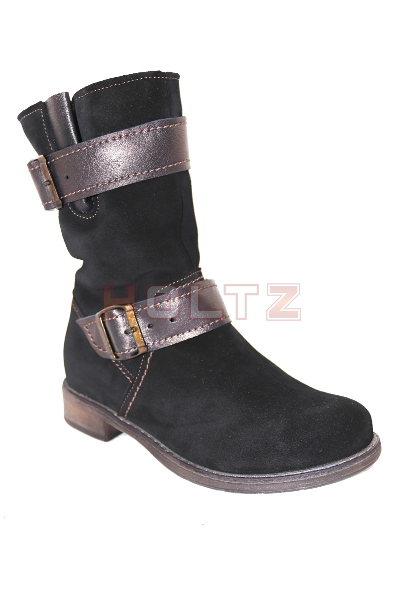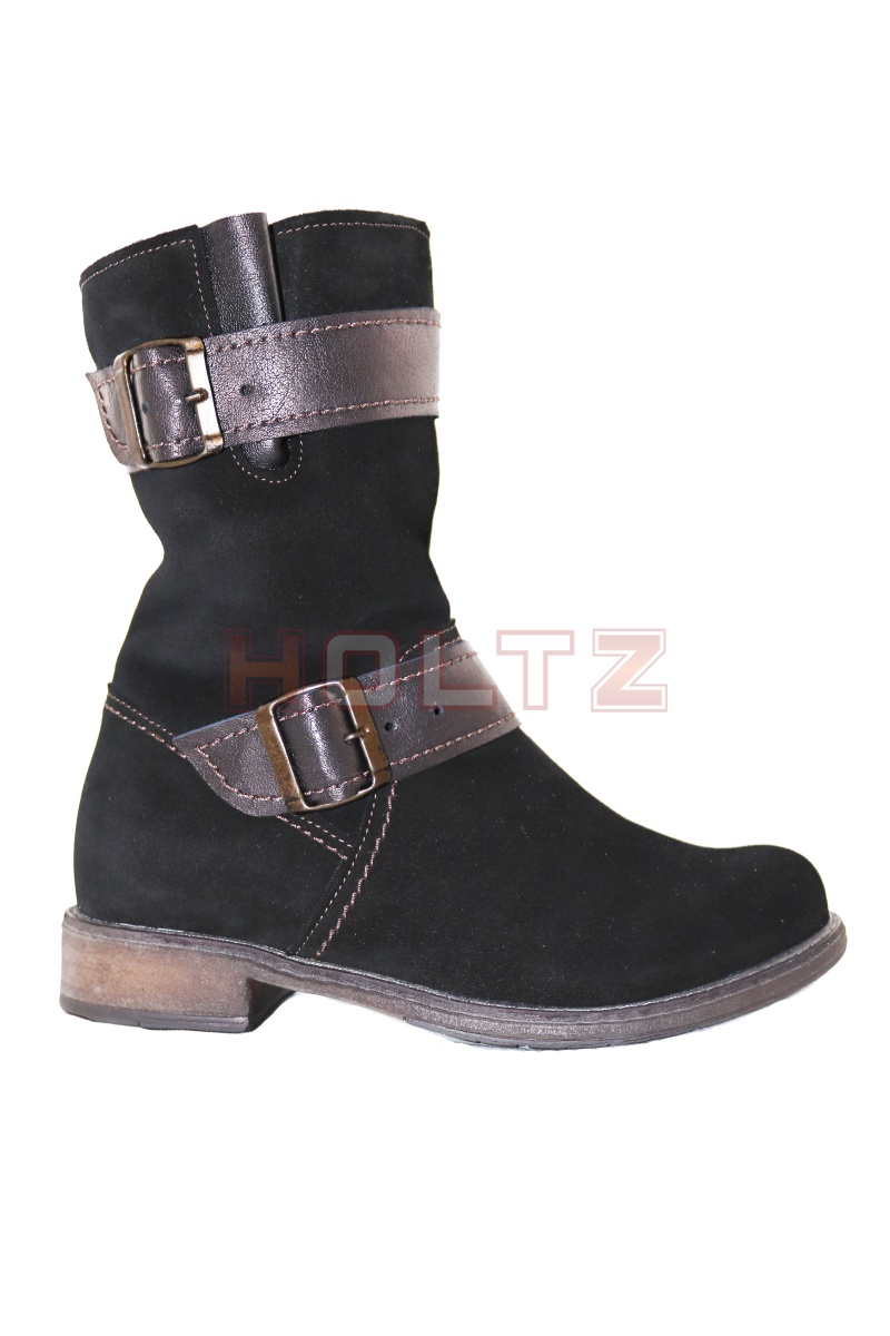 Женские зимние замшевые полусапоги с пряжками 8636 1-0-1