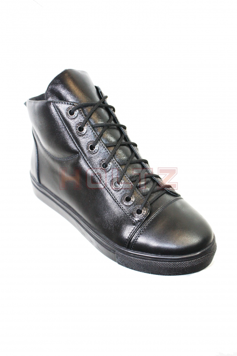 Оригинальные кеды из черной кожи на шерстяной подкладке. Шнуровка почти на всю длинну. Стойкая к истеранию подошва из ТЭП. Производство Санкт-Петербург.