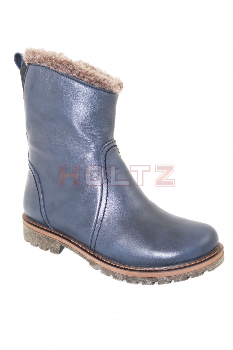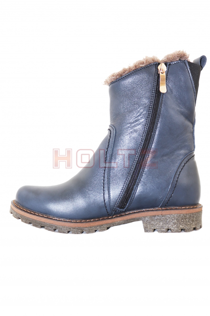 Женские зимние кожаные синие полусапоги Karina
