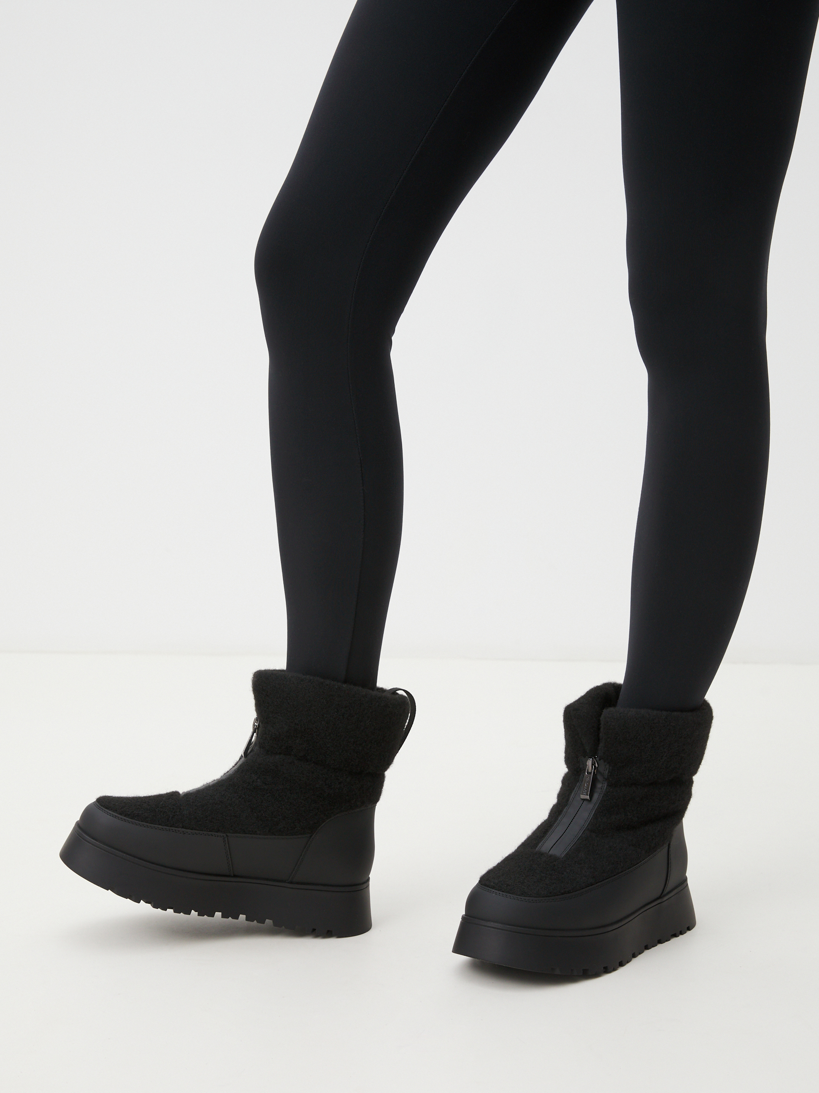 Подошва этой модели дополнена металлической пластиной с загнутыми зубцами, которые делают обувь нескользкой. Зубцы вцепляются в поверхность, позволяя вам чувствовать себя уверенно на утрамбованном снегу и обледенелых тротуарах. Зубцы расположены под носком и пяткой – теми участками стопы, которыми вы отталкиваетесь при ходьбе. Зубцы можно активировать по необходимости: это легко сделать руками, приподняв пластину за специальный выступ. Со спрятанными зубцами подошва становится обычной, вы сможете ходить по ламинату и линолеуму без риска их поцарапать. Антискользящие пластины не выступают за подошву, поэтому не портят дизайн обуви и незаметны для окружающих, в отличие от съемных накладок.