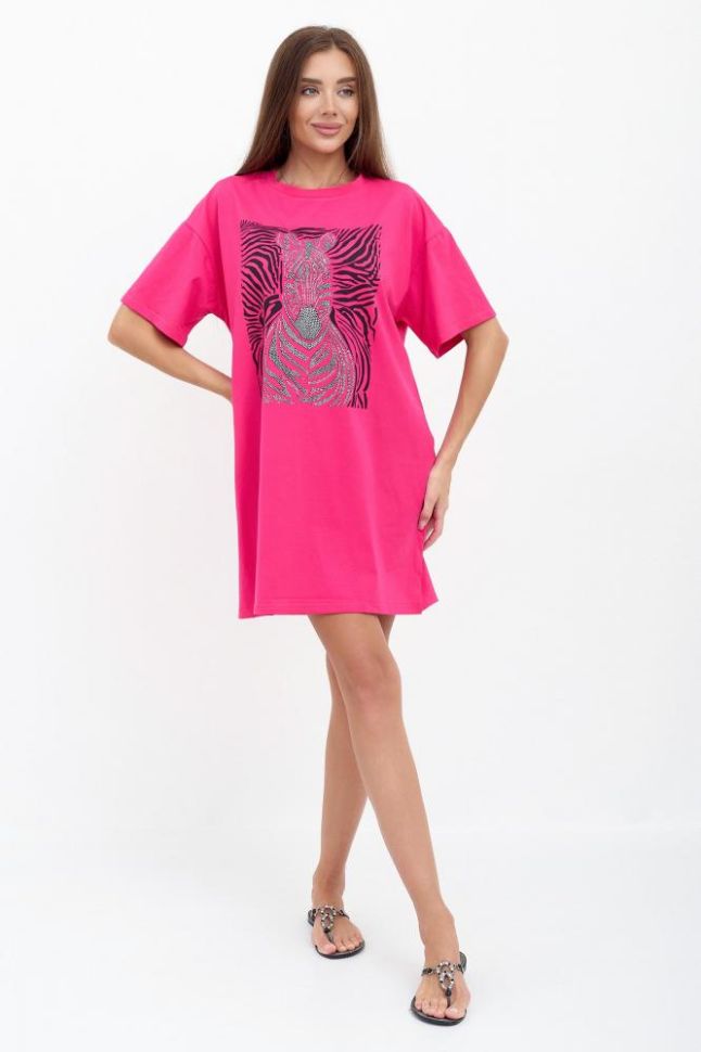 Ткань: кулирка с лайкрой; Состав: хлопок 92%, лайкра 8%; Сезонность: лето; Рукав: короткий рукав; Стиль: домашний, молодежный, пляжный, повседневный; Застежка: без застежки; Карман: без карманов; Производство: г. Иваново; Тип изделия: туники; Цвет: темно-розовый