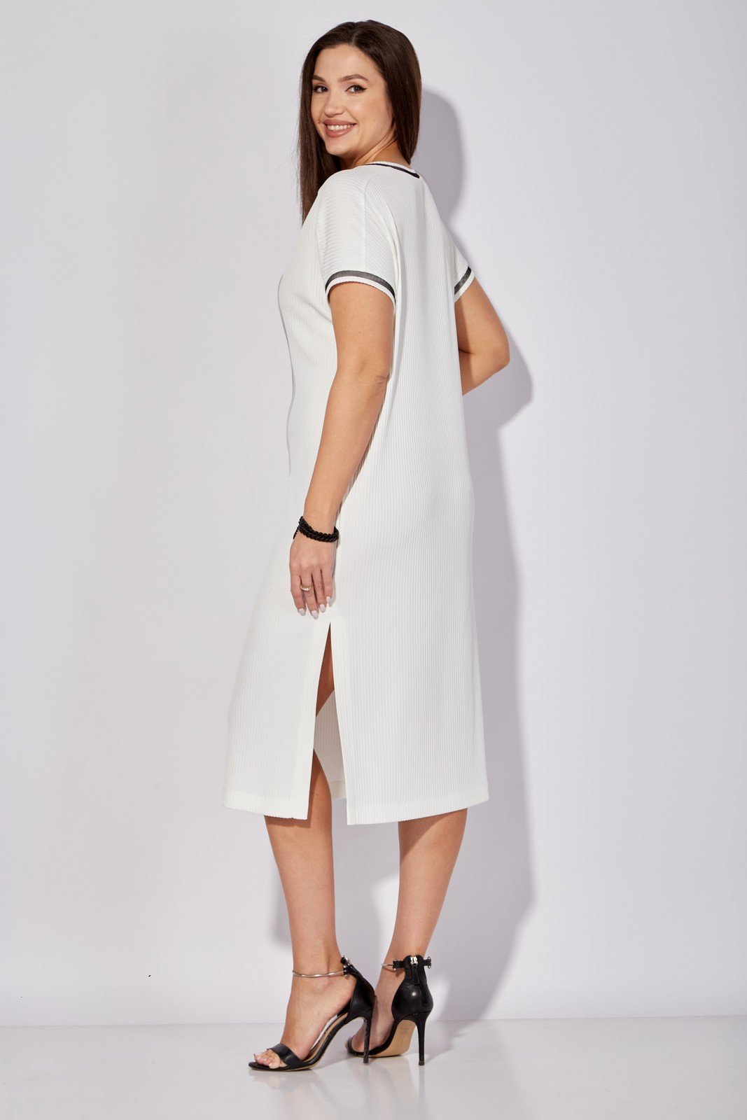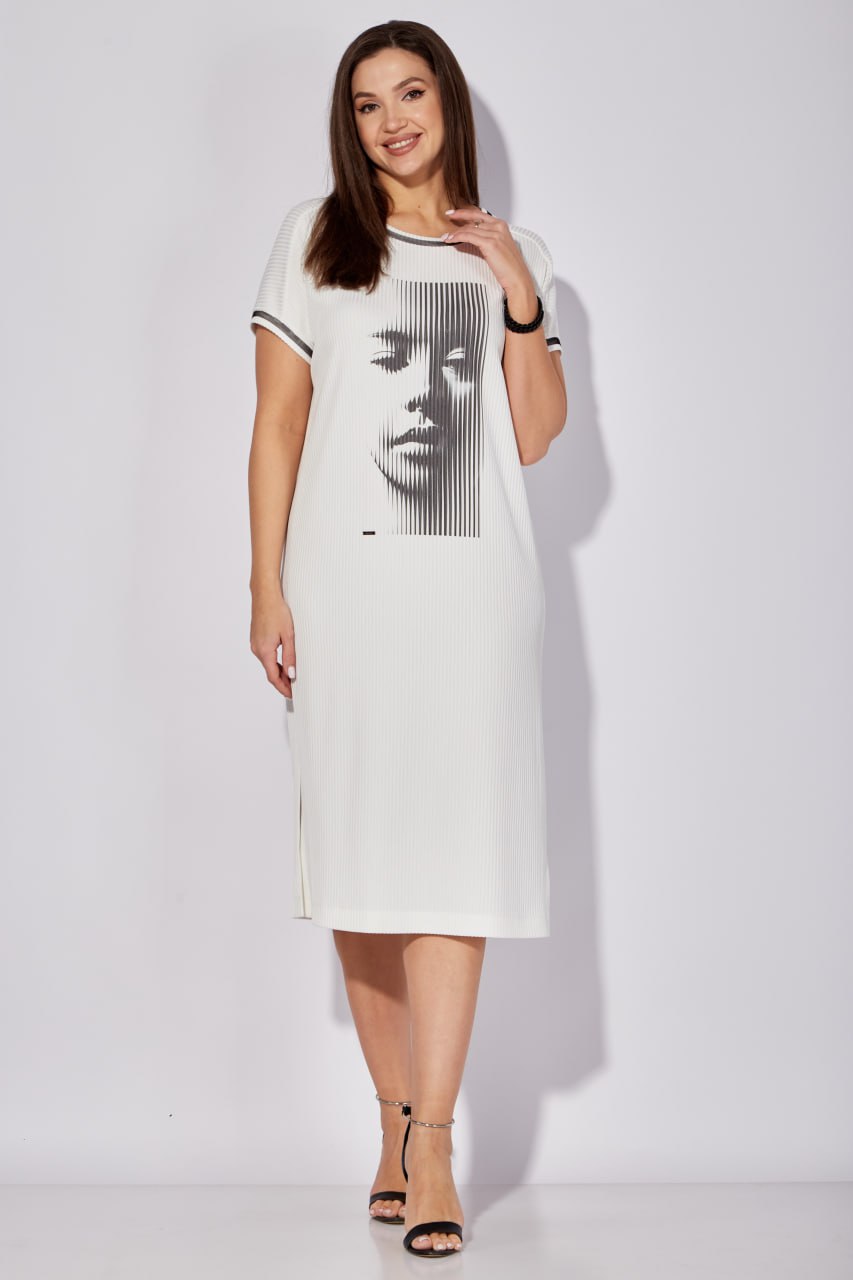 Платье из трикотажа "лапша", который изготавливается с использованием 75% вискозы и 25% полиэстера, обеспечивающих комфорт и долговечность. Прямой силуэт и круглый вырез делают это платье подходящим для повседневной носки. Особенности фасона включают короткий рукав и боковые разрезы, придающие изделию легкость и воздушность. Современный принт на передней части добавляет динамики и свежести в ваш гардероб. Это базовое платье в белом цвете подойдет для весенних и летних сезонов, идеально для офиса или прогулок по городу.