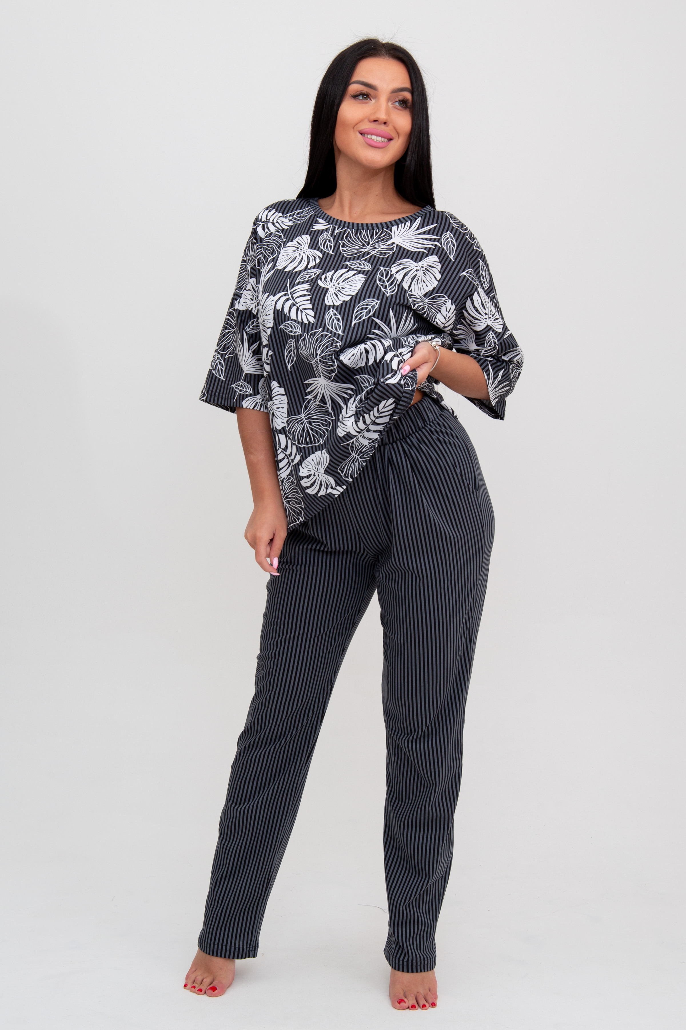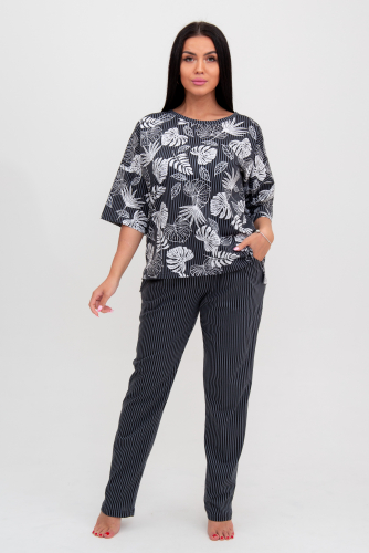 Женский домашний костюм свободного силуэта, выполненный из тканей-компаньонов.