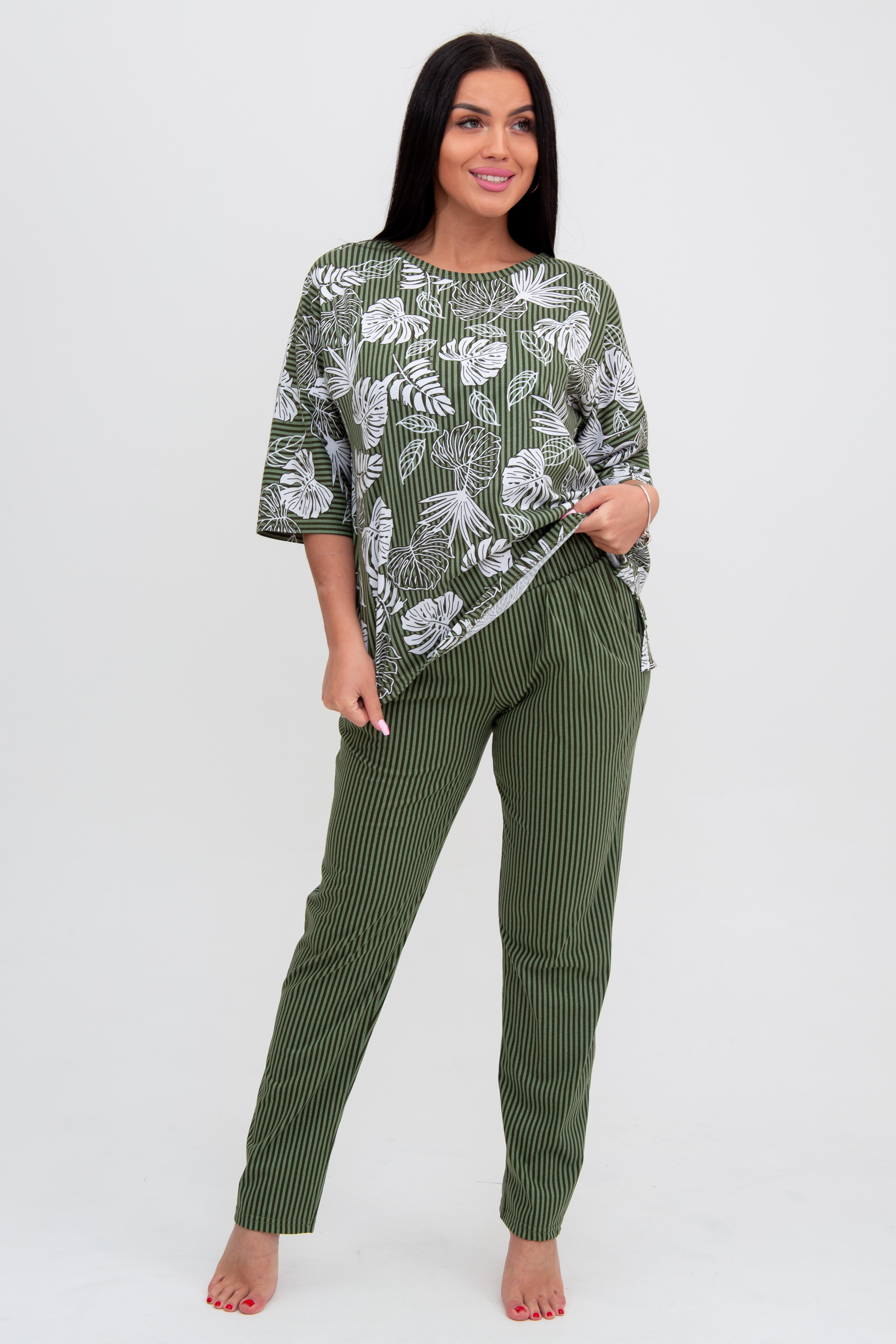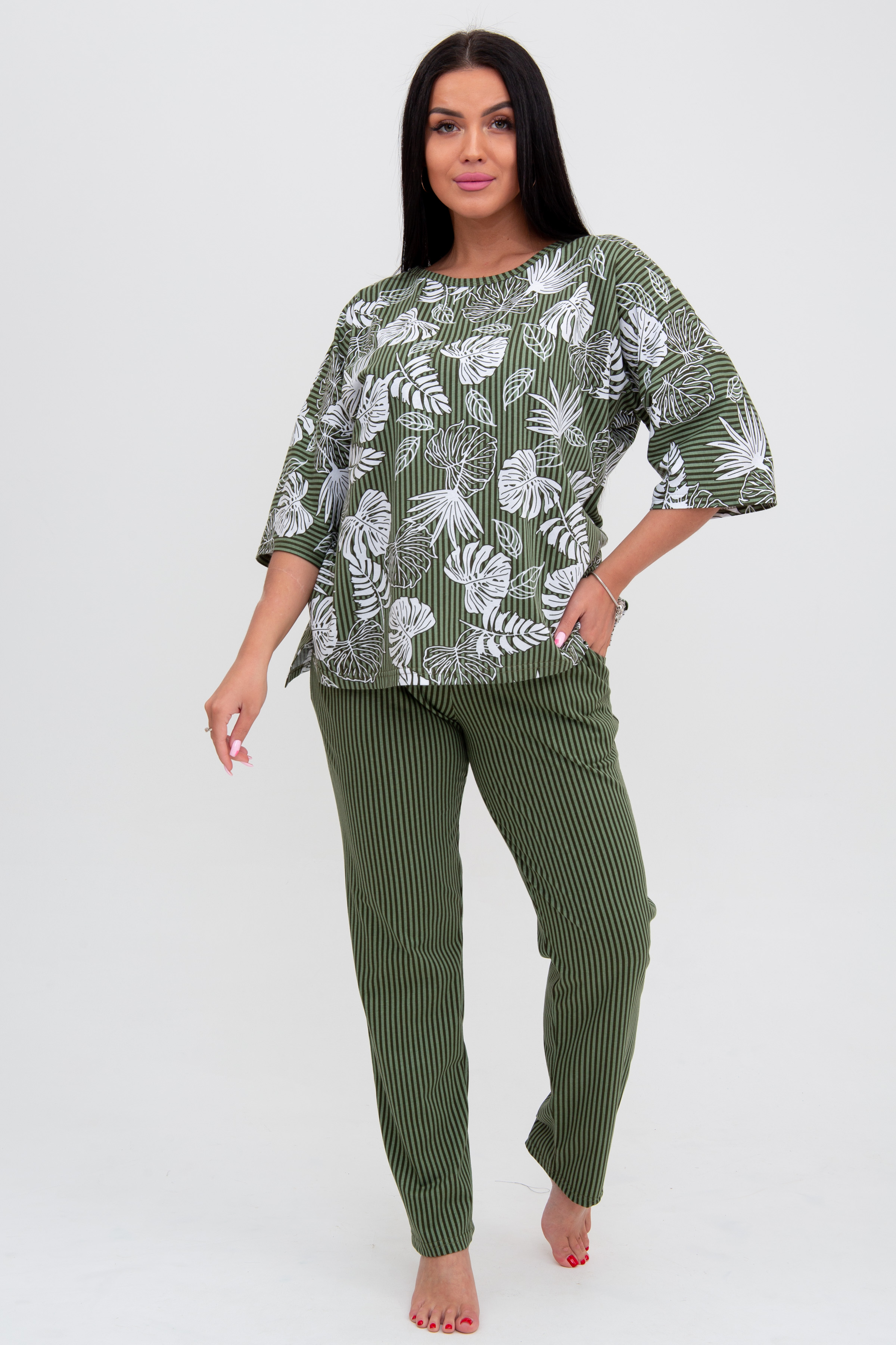 Женский домашний костюм свободного силуэта, выполненный из тканей-компаньонов.