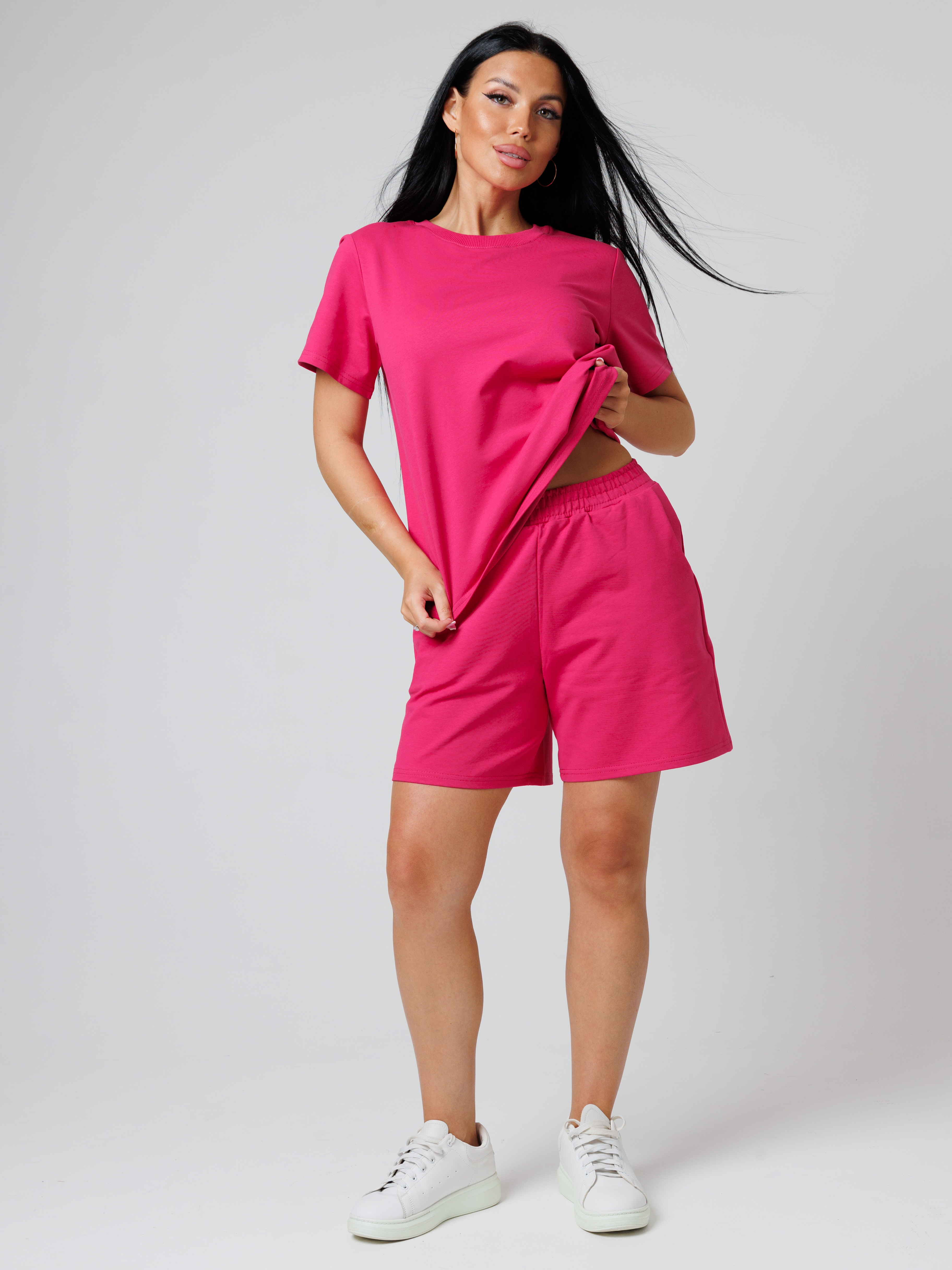 Стильный молодежный костюм  из футера состоит из футболки  и шорт