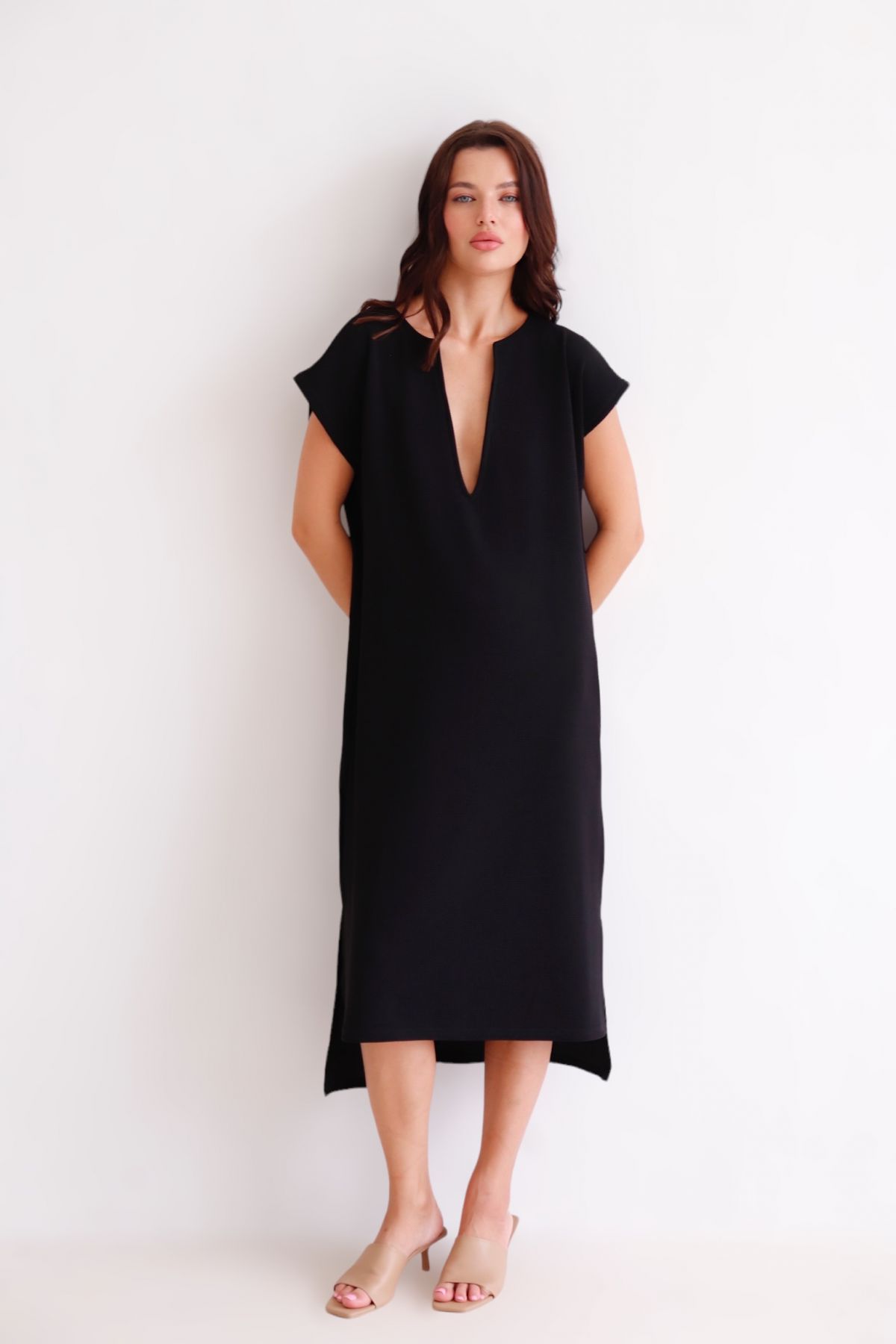 13292 Платье чёрное с глубоким вырезом летнее