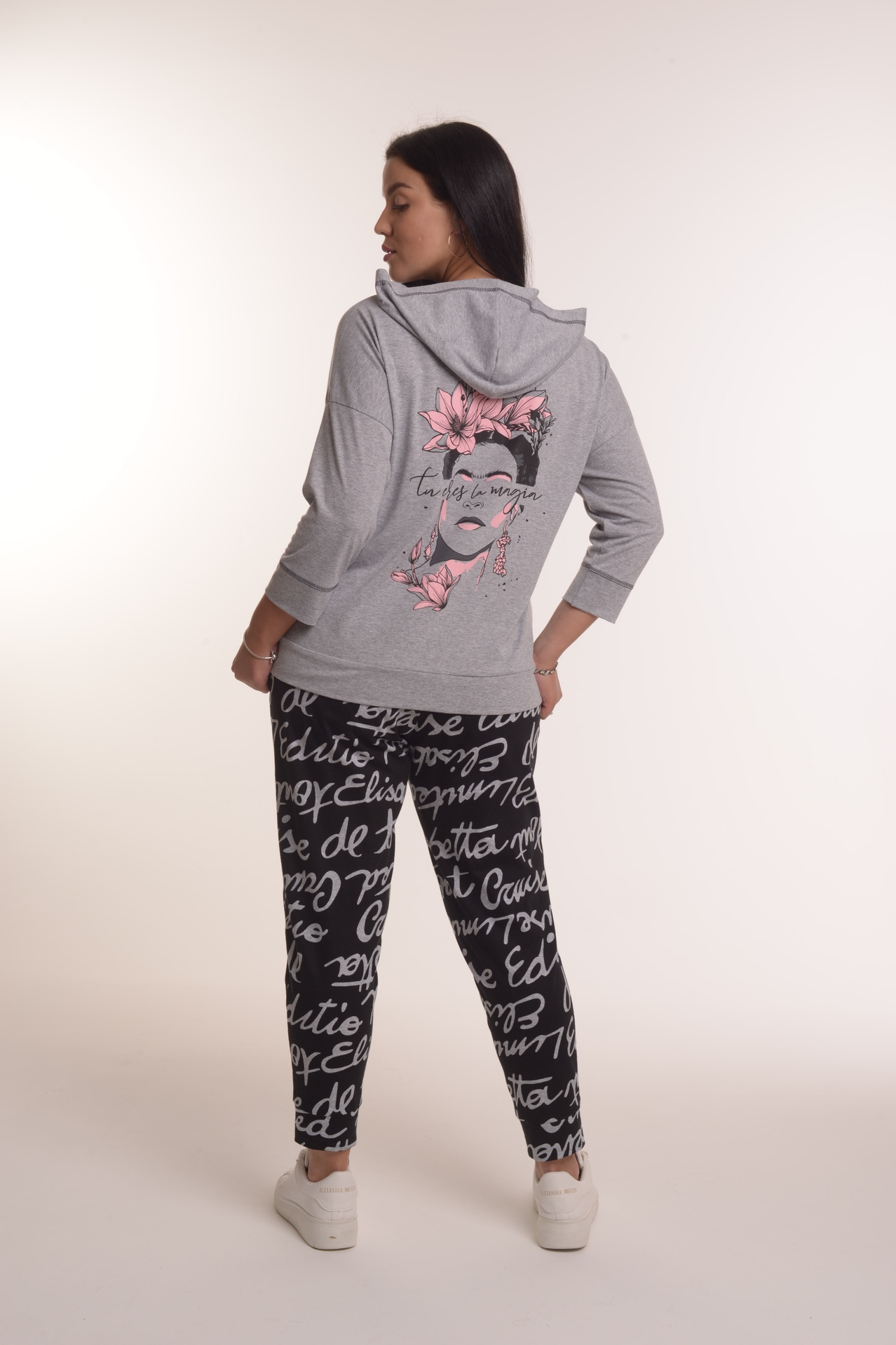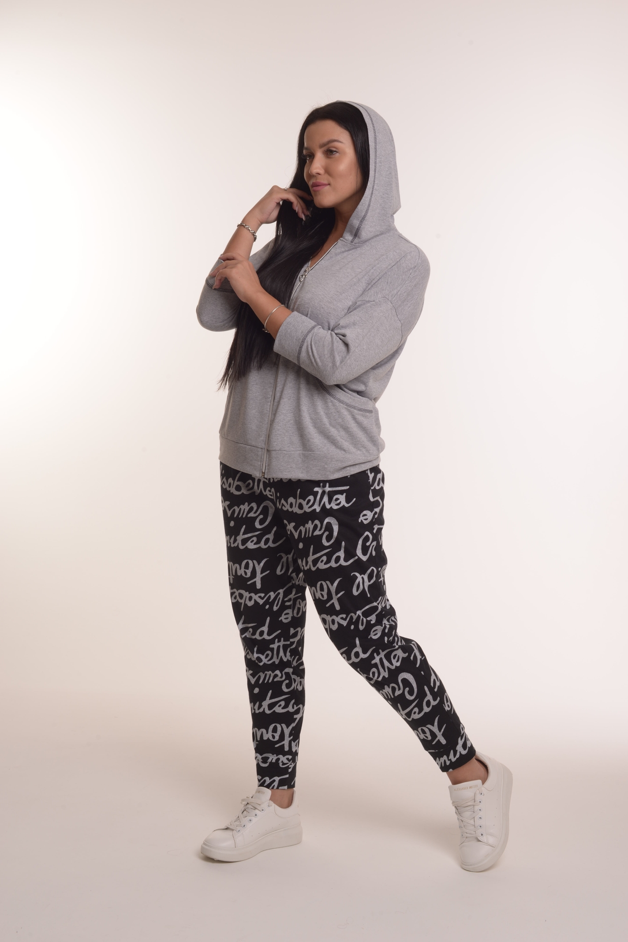 Стильный костюм состоит из толстовки и брюк