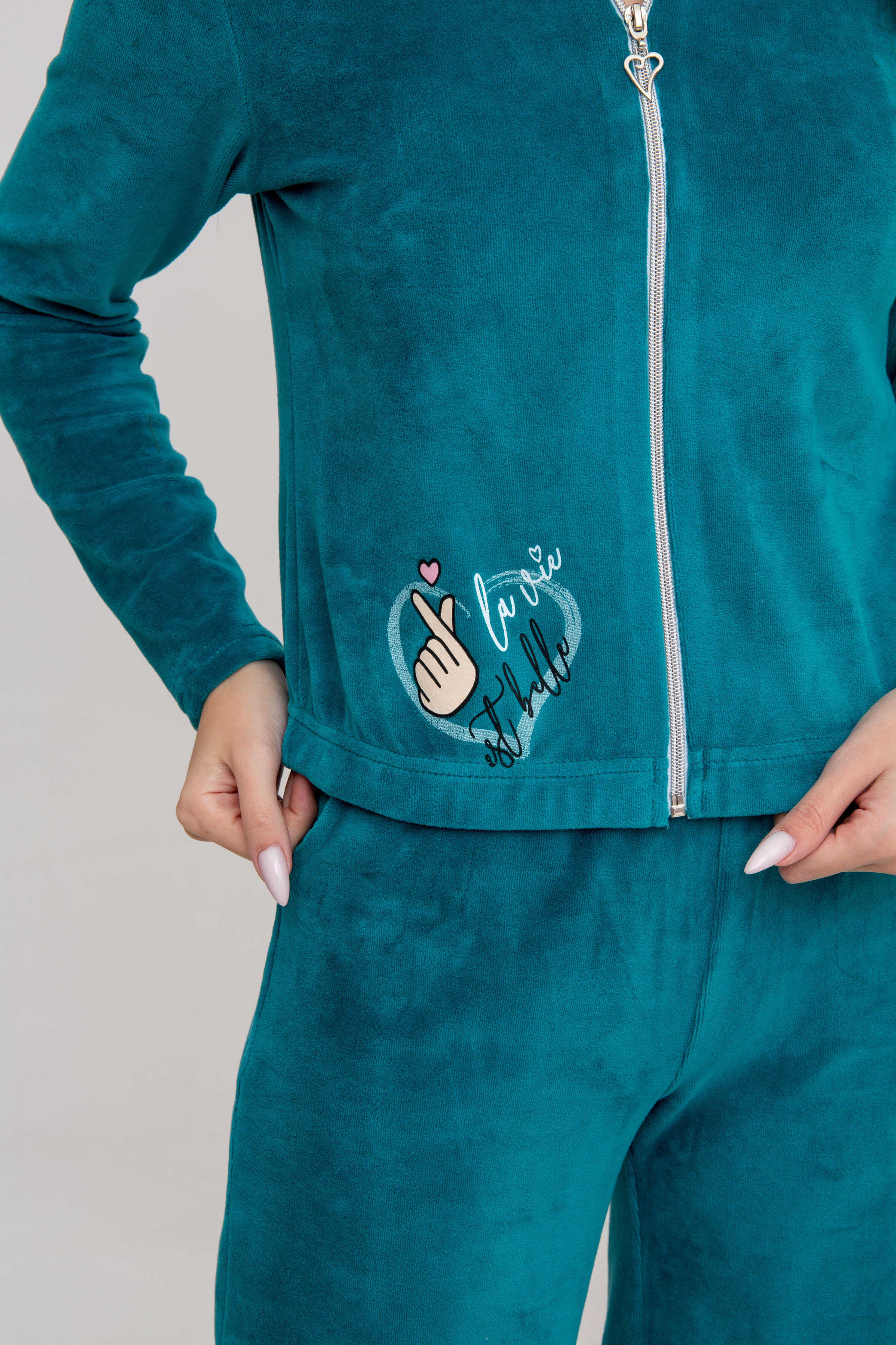 Костюм из велюрового полотна, состоит из толстовки и брюк