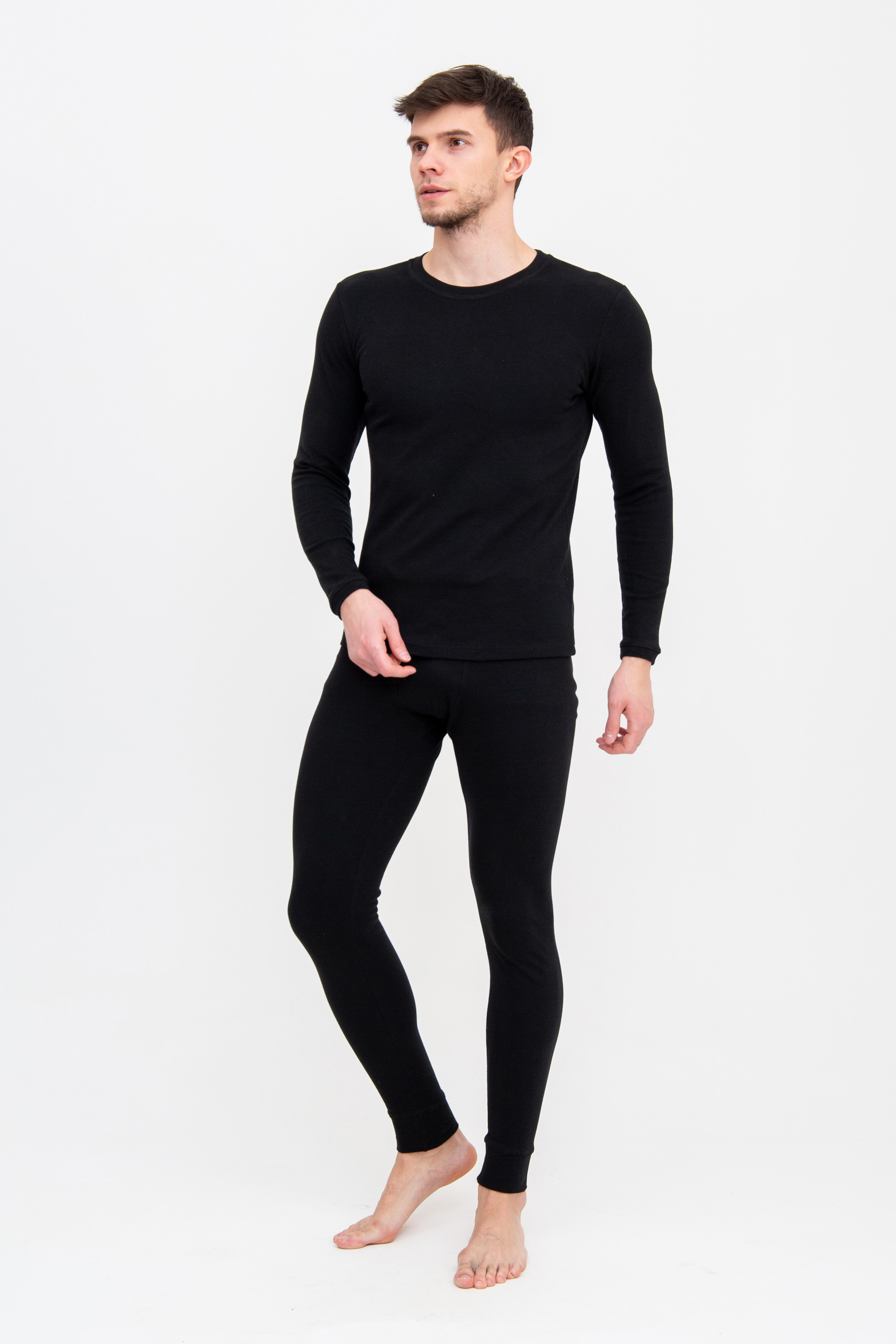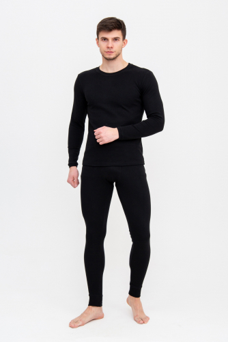 Костюм мужской, состоит из фуфайки и кальсон. Фуфайка с круглой горловиной; кальсоны на резинке, низ на манжете.