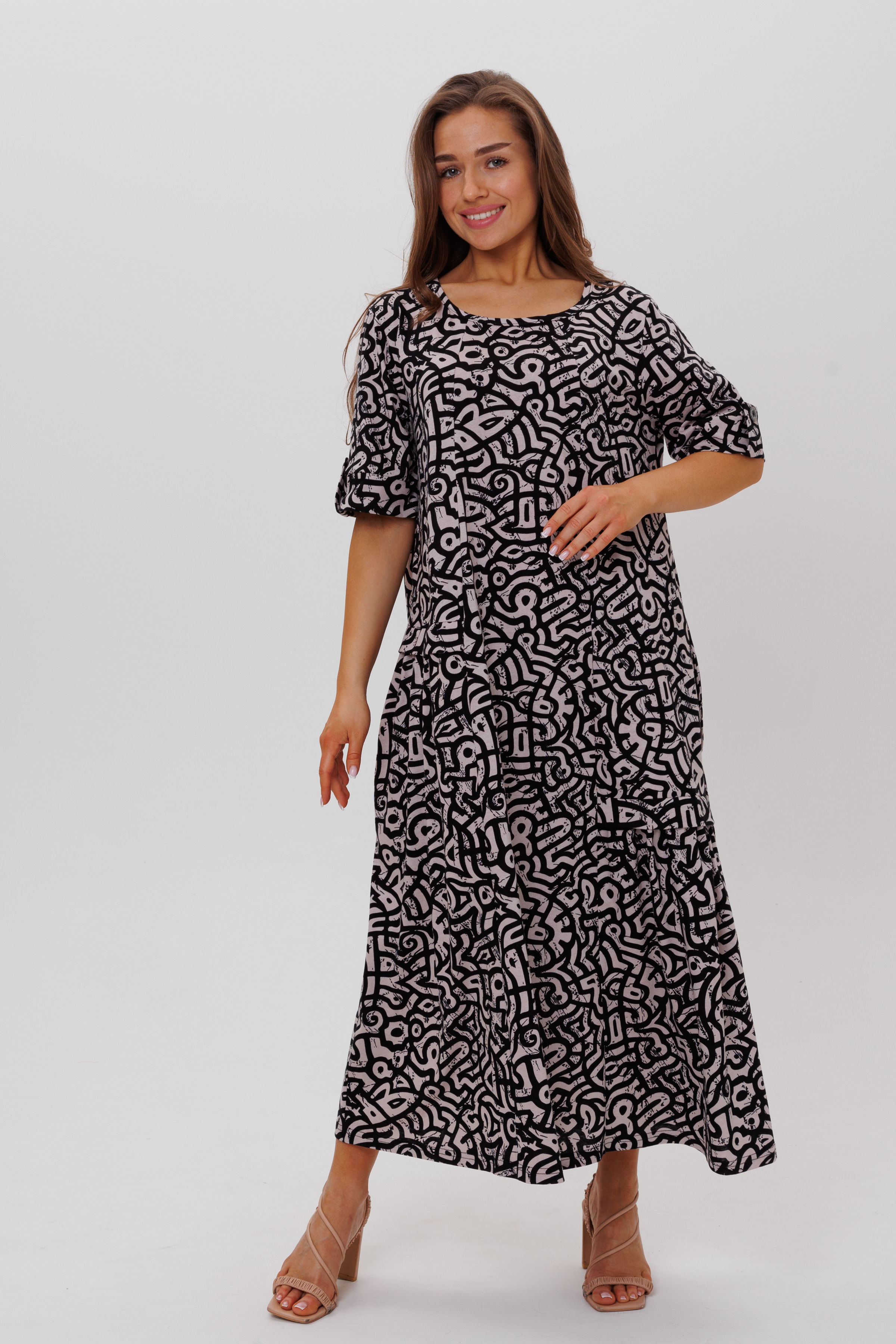 Платье в стиле бохо с карманами в боковых швах.