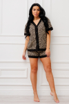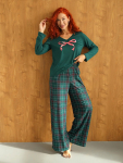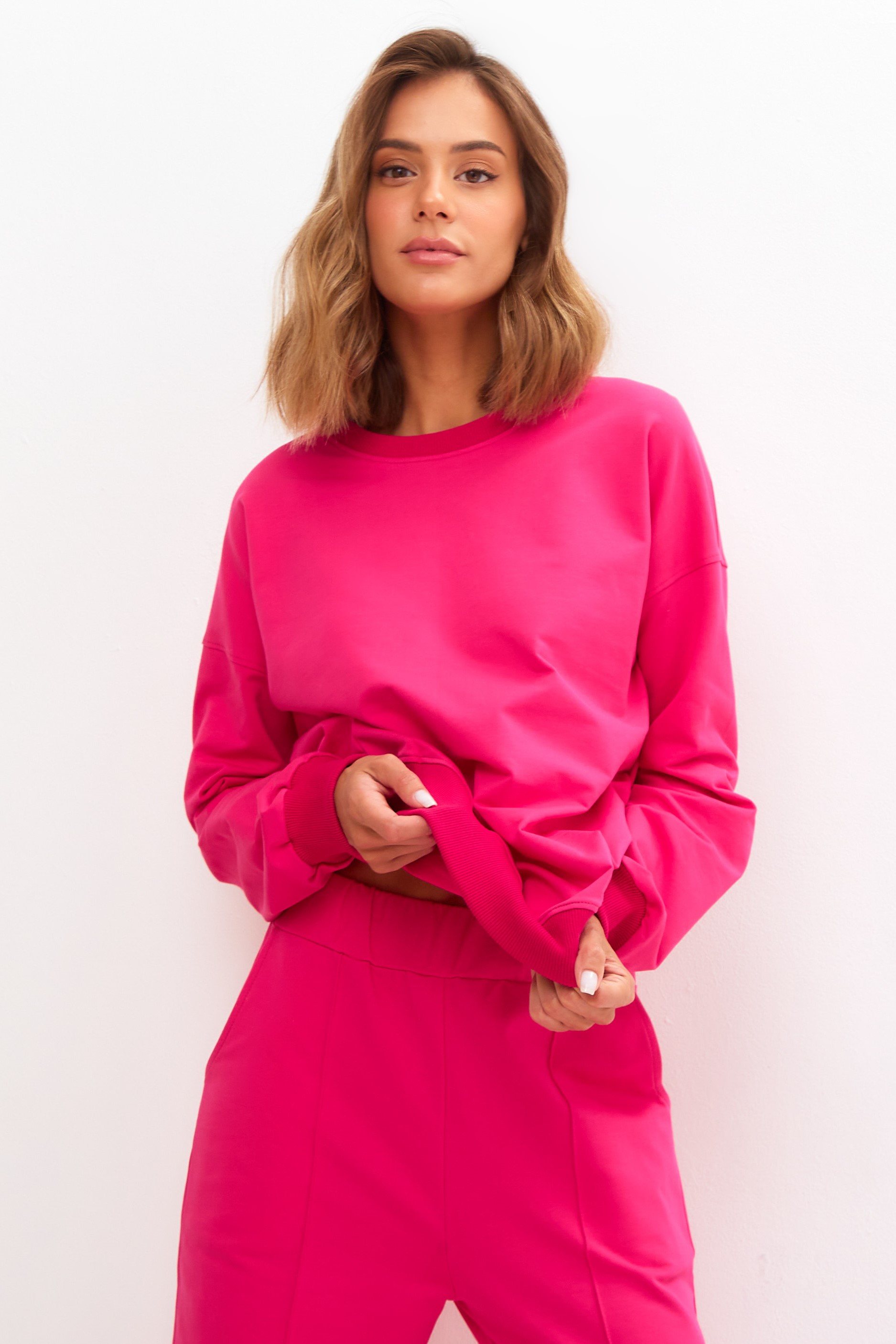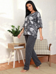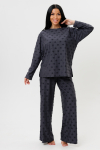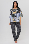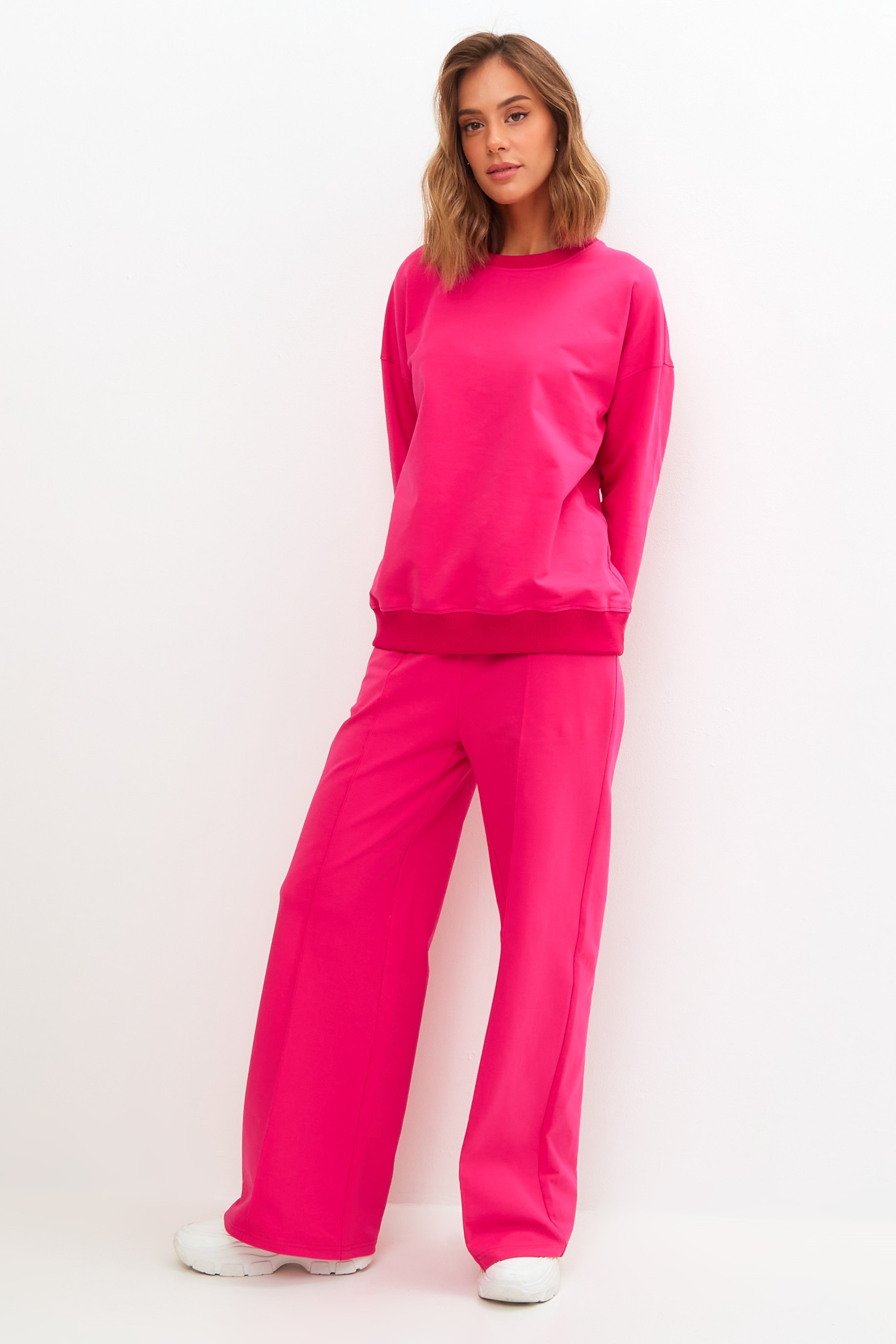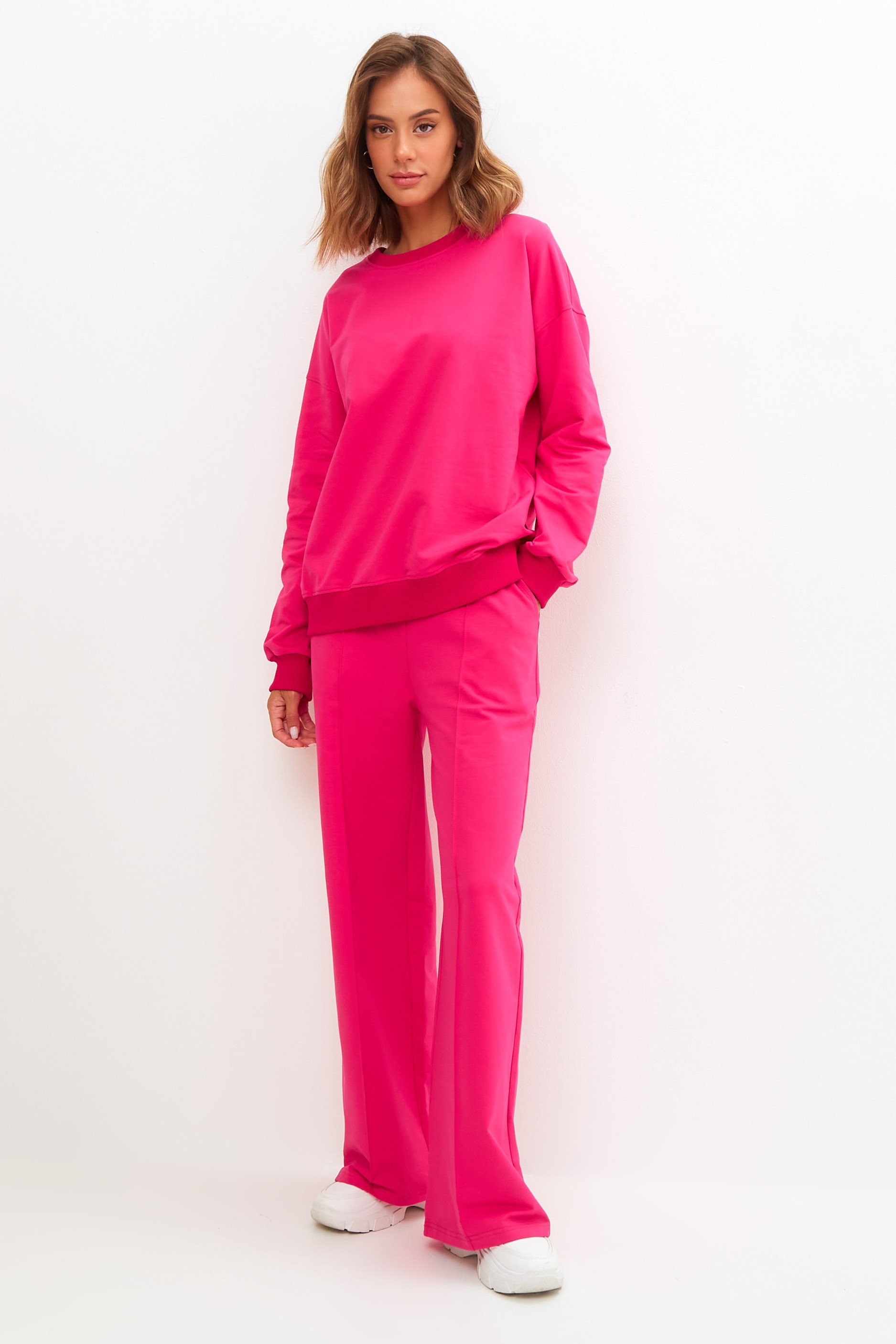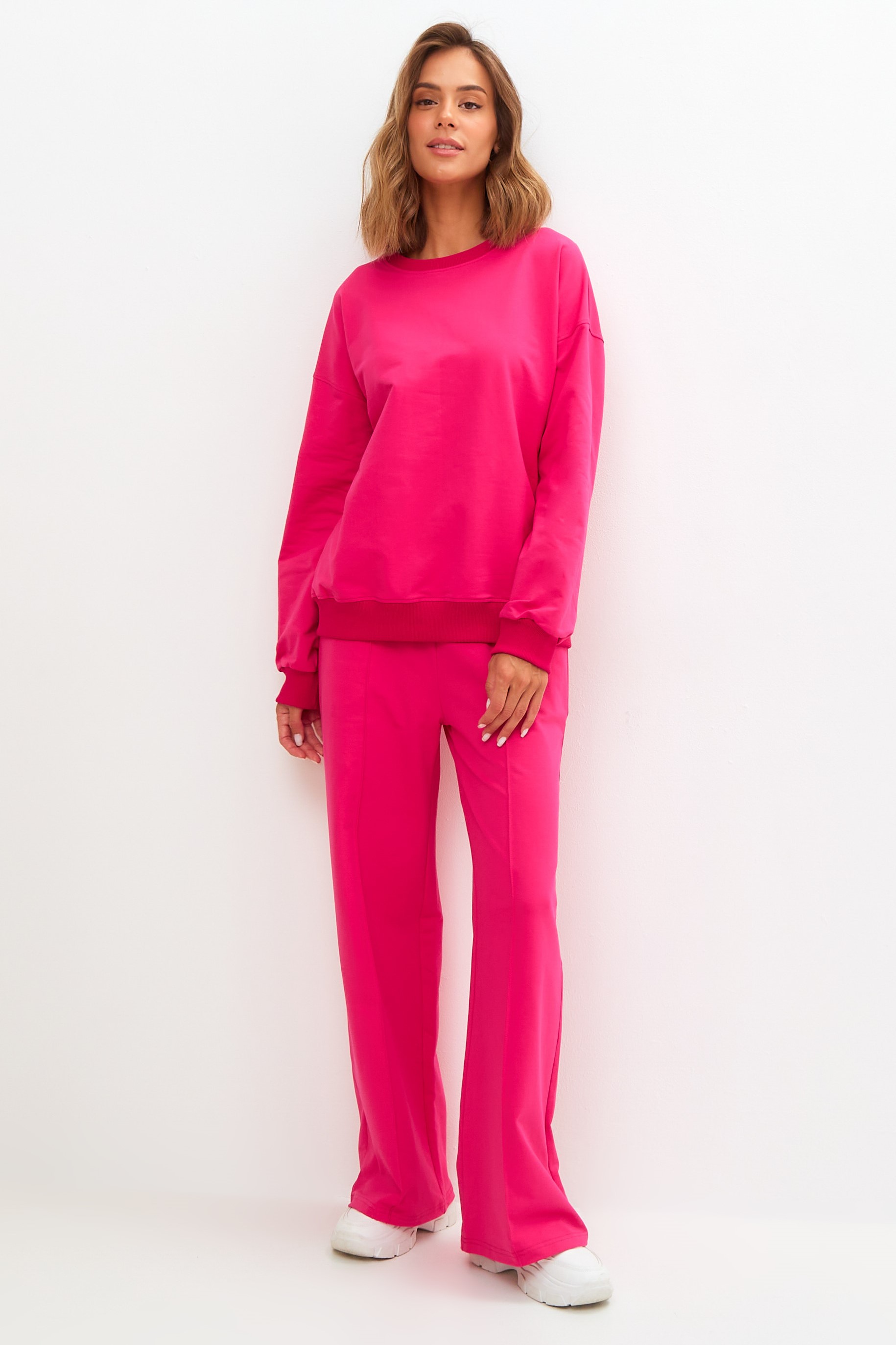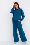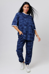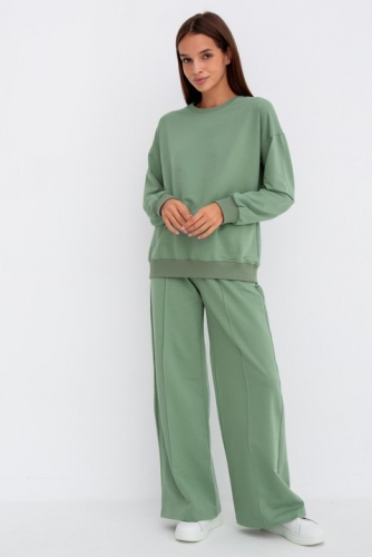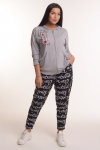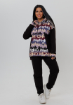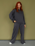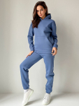 Костюм свободного кроя состоит из толстовки и брюк.