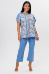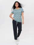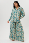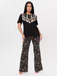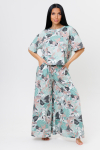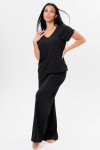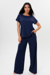 Расклешенные к низу брюки палаццо стандартной посадки дополнены удобными прорезными карманами.
