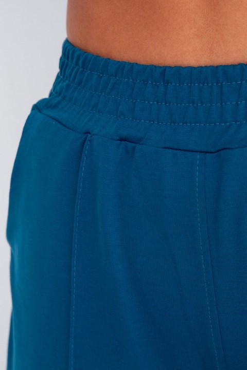 Расклешенные к низу брюки палаццо стандартной посадки дополнены удобными прорезными карманами.