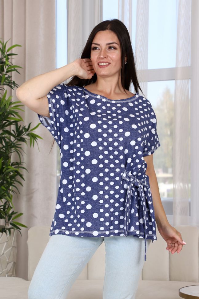 Ткань: кулирка; Состав: 100% хлопок; Сезонность: лето; Рукав: короткий рукав; Стиль: повседневный; Застежка: без застежки; Карман: без карманов; Производство: г. Иваново, швейное производство НАТАЛИ; Тип изделия: туники; Цвет: синий