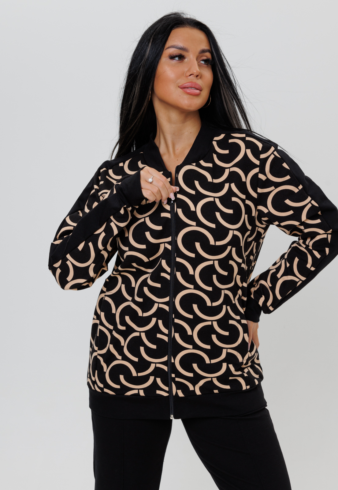 Бомбер и брюки из комплекта отлично сочетаются по отдельности с другими элементами гардероба.