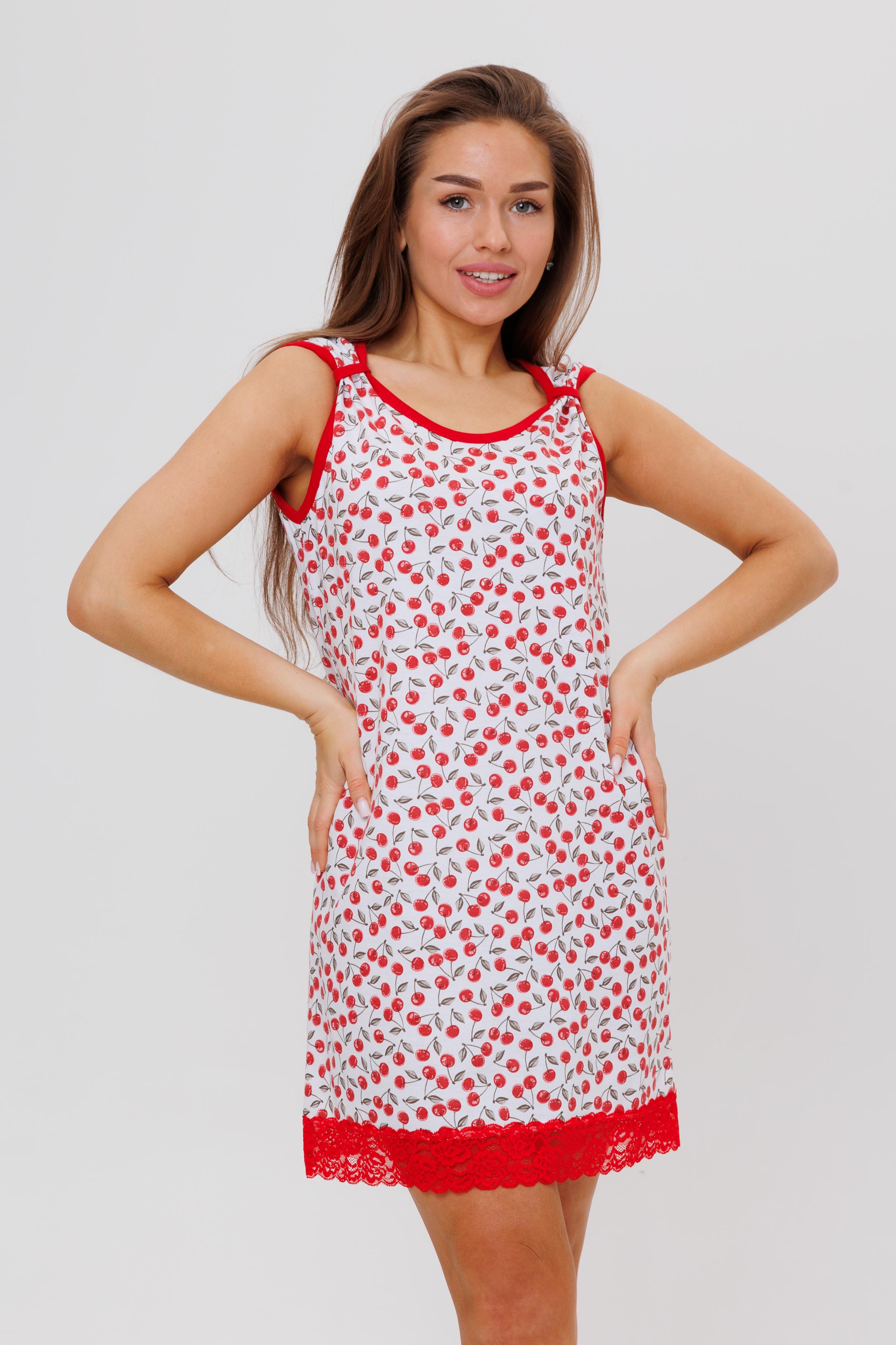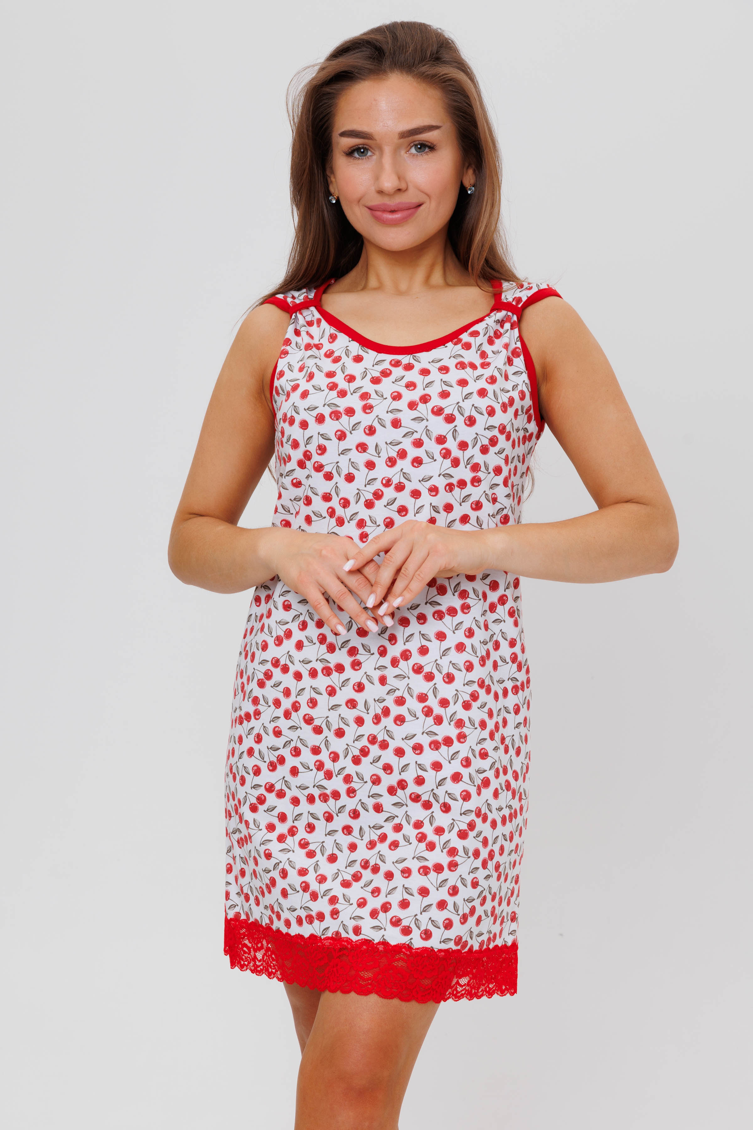 Ночная сорочка из кулирки на фигурных бретелях. Длина до колена, низ сорочки отделан кружевом