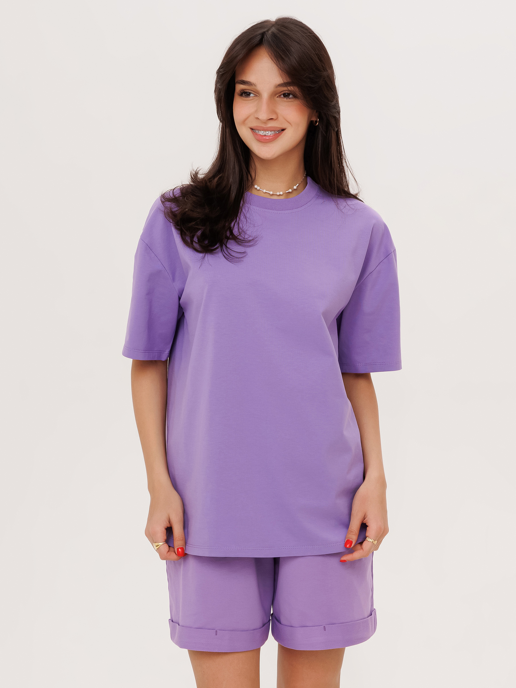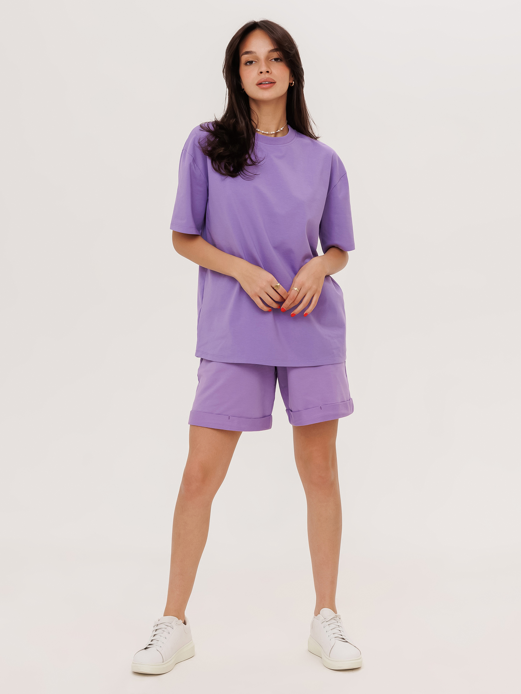 Стильный молодежный костюм  из разных трикотажных полотен состоит из футболки  и шорт