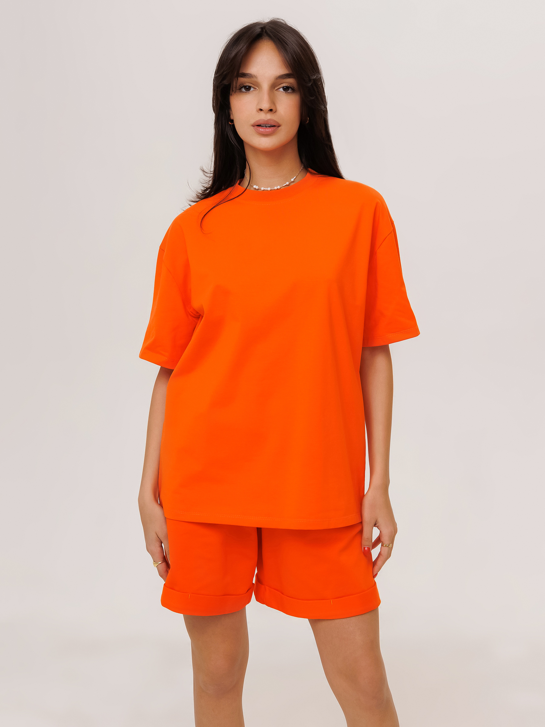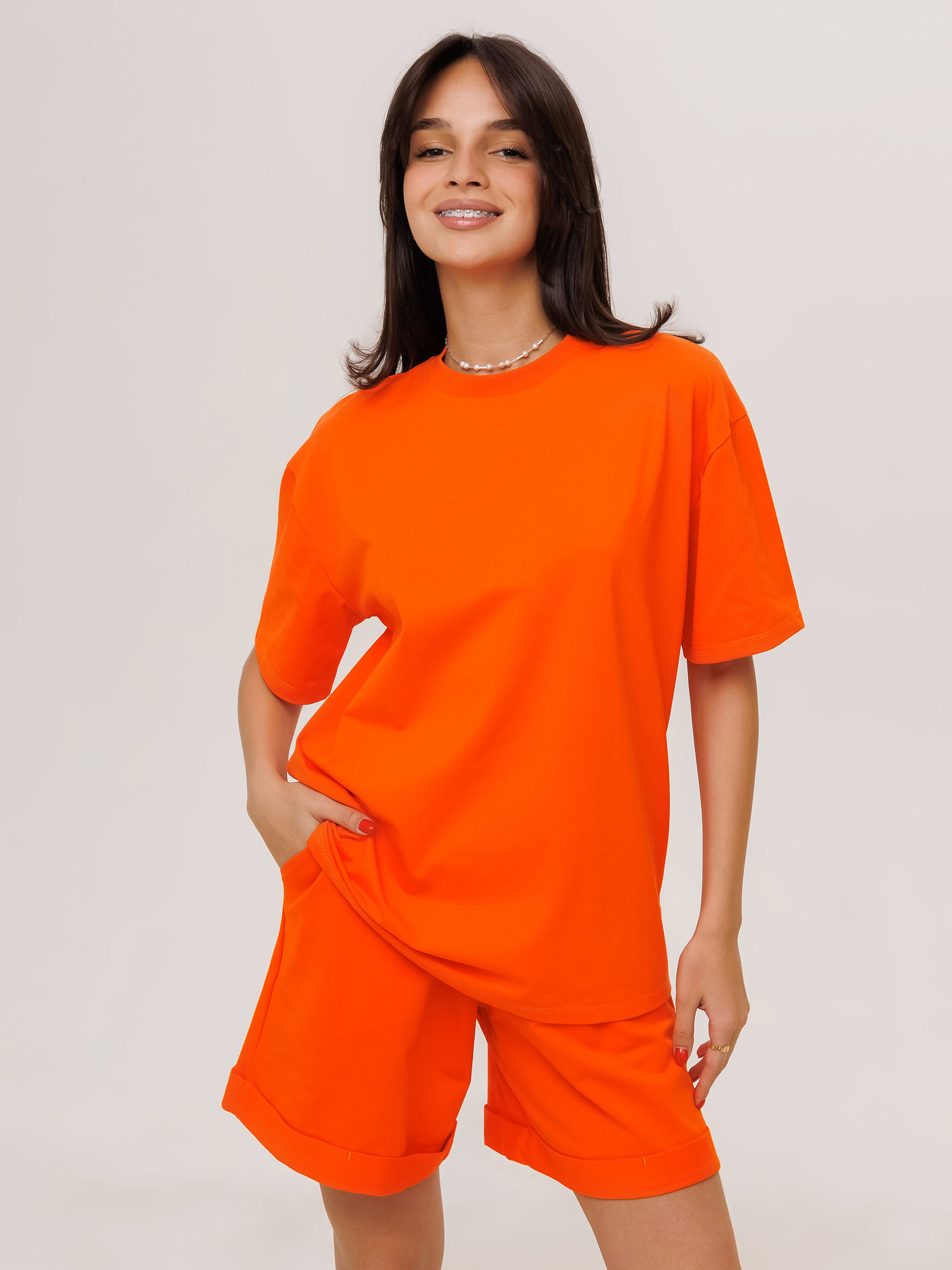 Стильный молодежный костюм  из разных трикотажных полотен состоит из футболки  и шорт