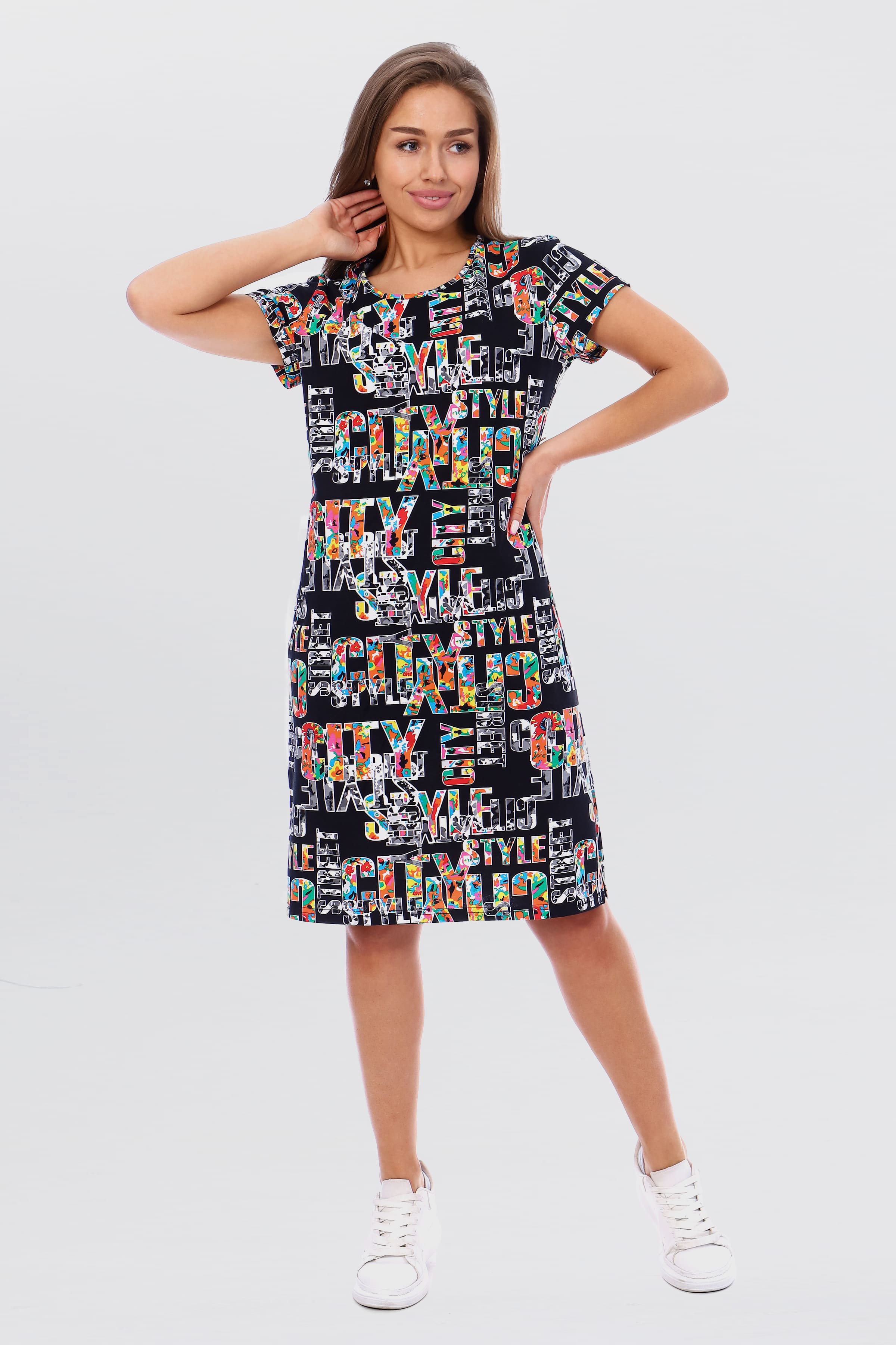 Яркая летняя туника из кулирки с коротким рукавом. Длина - до колена. В боковых швах карманы
