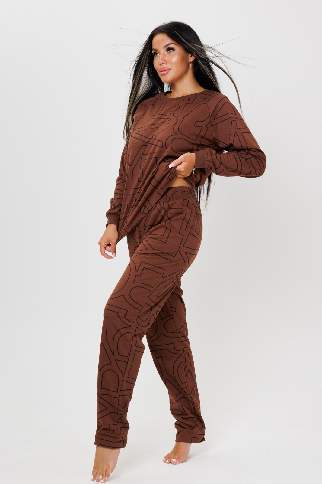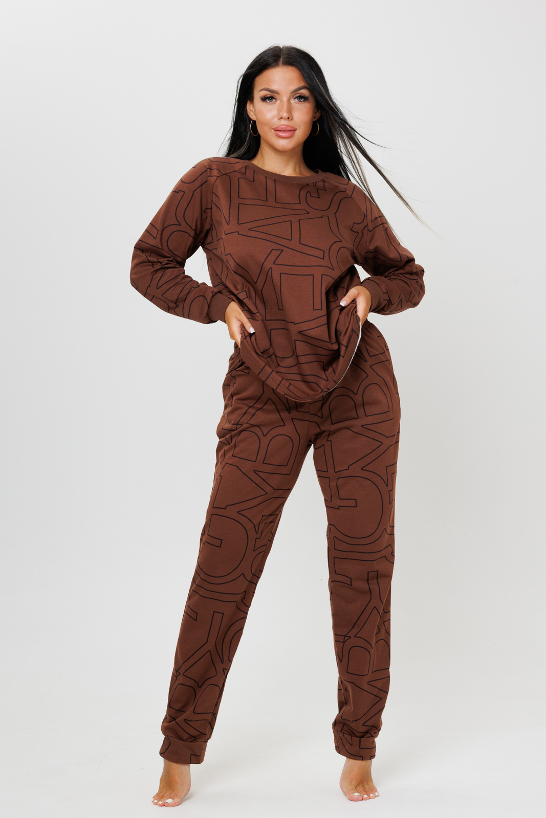 Уютный теплый костюм из футера с начесом для домашнего отдыха и сна. Он может быть использован как пижама. Костюм включает в себя кофту с длинным рукавом и брюки.