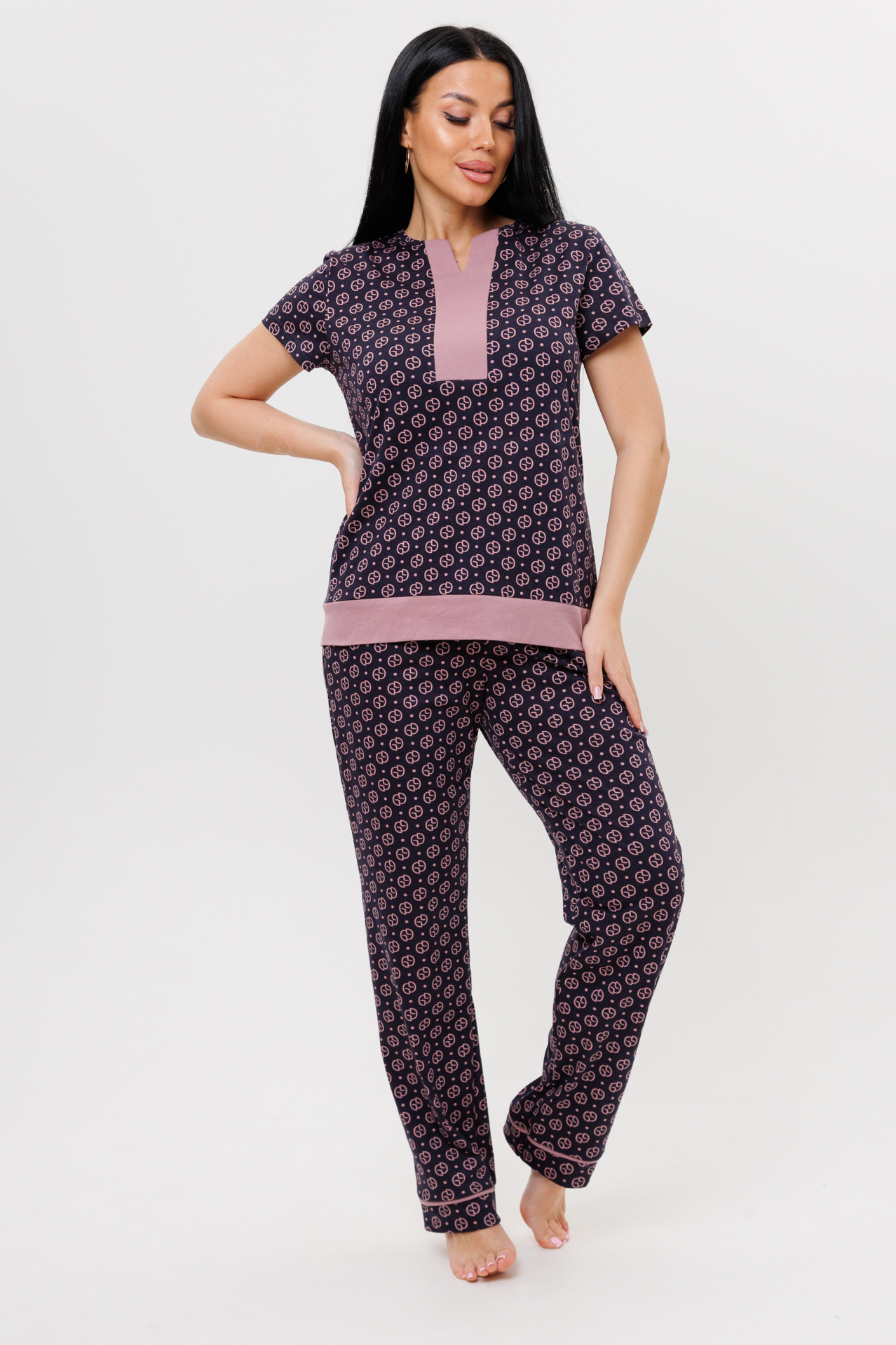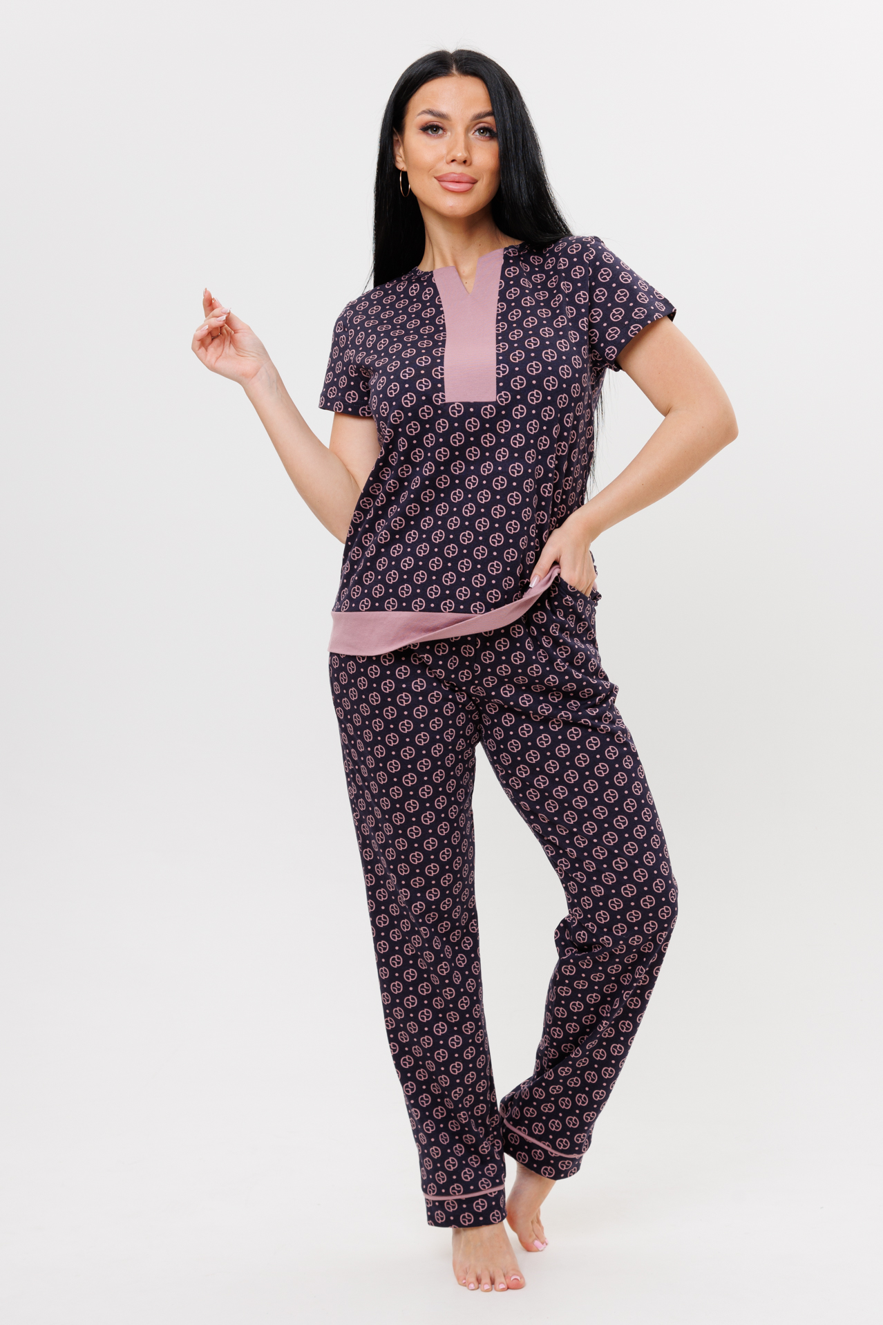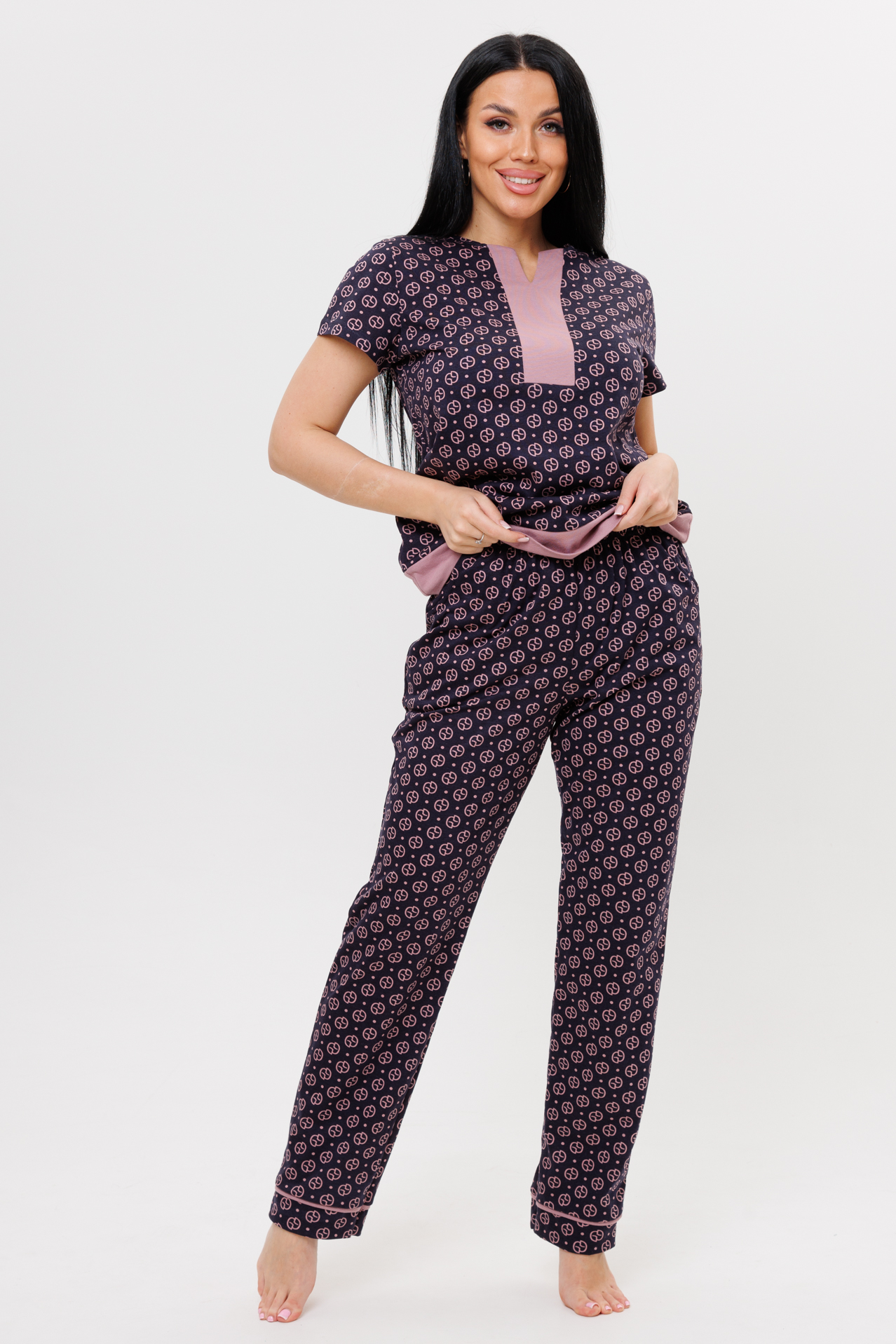 Женский домашний костюм с брюками.