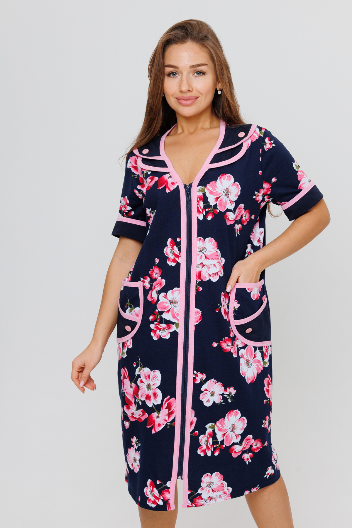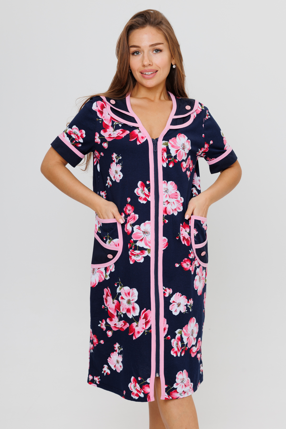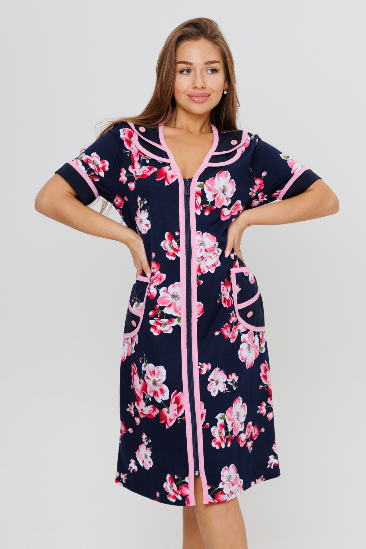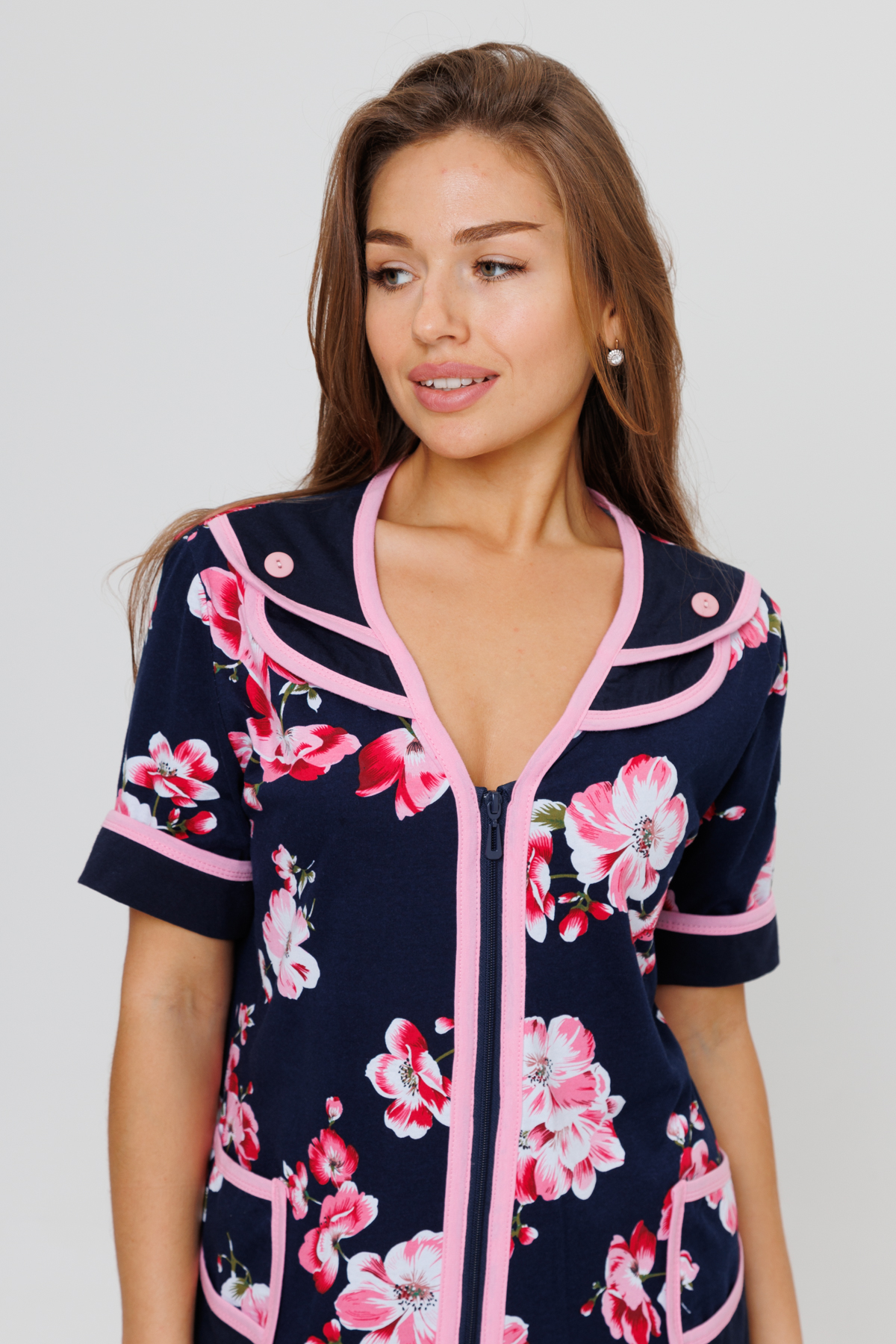 Все элементы халата: воротник, карманы, манжеты рукавов обработаны яркой окантовкой.