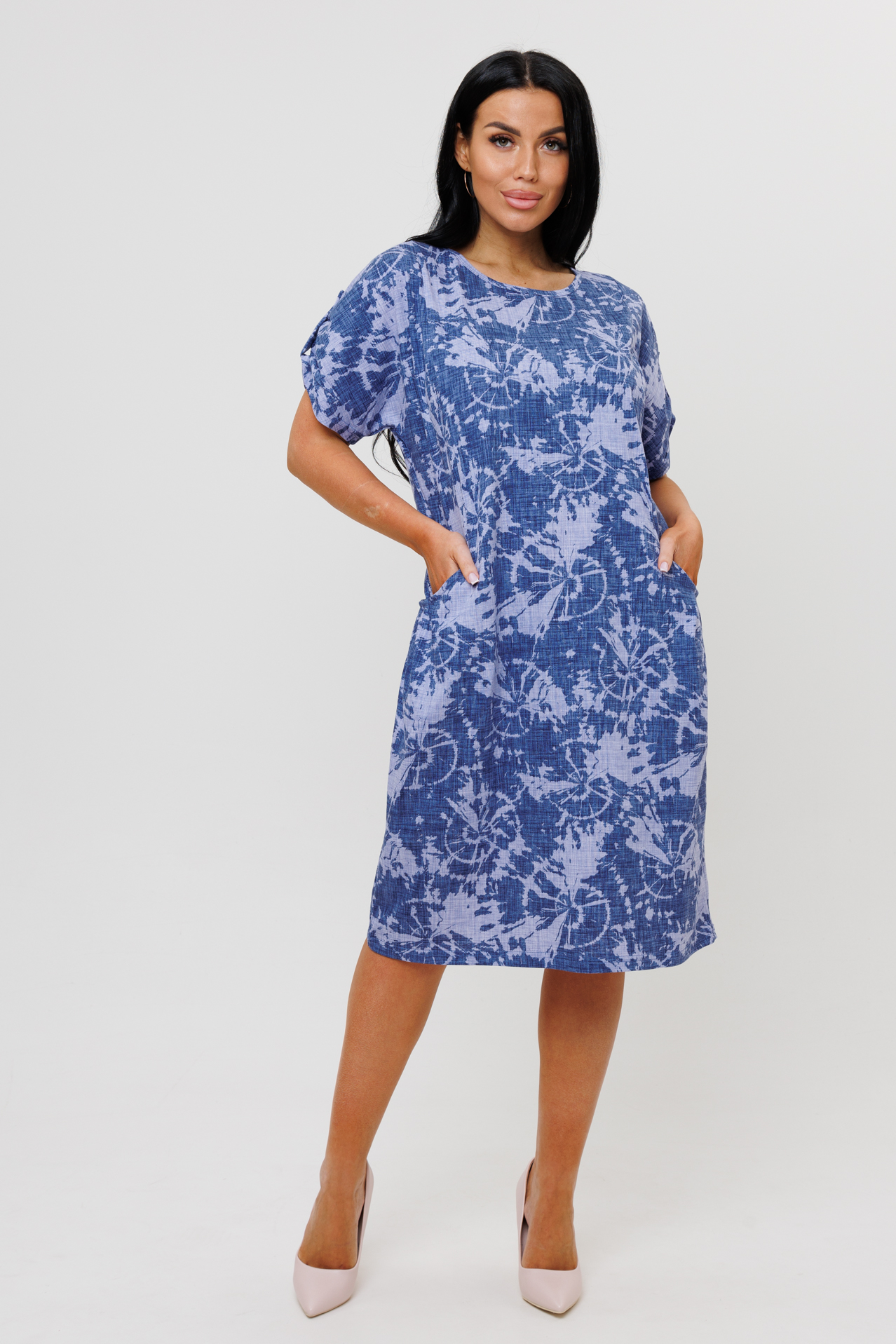 Хотите выглядеть всегда элегантно и стильно, особенно летом? Предлагаем платье оригинального кроя. Прямой силуэт слегка зауженный книзу подойдёт на любую фигуру и скроет ее недостатки. Современный короткий цельнокроеный рукав, декорированный патой на пуговице, прорезные карманы с защипами и классический круглый вырез придают платью шарм и легкость, а оригинальный принт даст себя почувствовать стильно. Платье, выполненное из трикотажного полотна 100% хлопка, обеспечит чувство свежести и комфорта в жаркие летние дни. Легкая ткань позволит вашей коже дышать и не перегреваться. Оно будет удобно для повседневной носки, прогулок теплыми летними вечерами, поездок на отдых и дачу, а также дома.