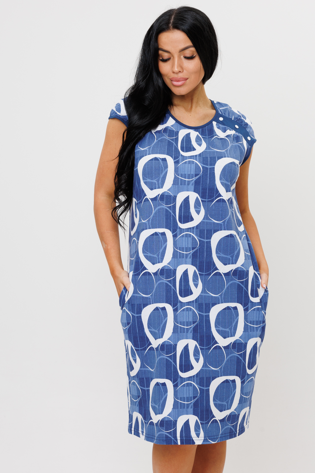 Элегантное домашние платье, полуприталенного силуэта, сшито из высококачественного трикотажного полотна, содержащего 100% хлопок. Круглый вырез отделан кантом из ткани компаньона. Спущенный цельнокроеный короткий рукав, отделанный тканью компаньоном, не сковывает движения. Кокетка, из ткани компаньона, декорированная пуговицами, расположена выше груди, карманы, вшитые в боковые швы, придают платью элегантность. Легкое платье для дома - это универсальная вещь, дополняющая домашний гардероб любой женщины. Повседневное платье - одежда для дома, подходит как для молодых девушек, так и для взрослых женщин. Размерная сетка данной модели от 48 до 58 размера. Красивое и удобное платье станет отличным подарком для дорогих и любимых женщин.