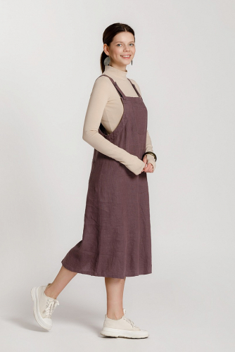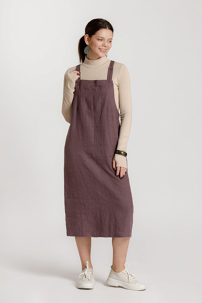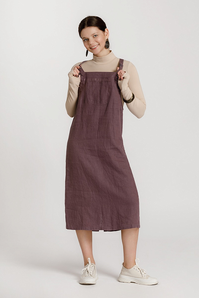 Сарафан – это один из наиболее универсальных видов женской одежды. Благодаря разнообразным комбинациям с топами, блузами или футболками предназначение сарафана может быть самым разным. Этот вид женской одежды не имеет чёткой фиксации на талии, благодаря чему не сковывает движения и позволяет выгодно скрыть проблемные участки телосложения. Дизайнеры марки Kayros предлагают обратить ваше внимание на представленную модель льняного сарафана. Силуэт трапеция в сочетании с длинной миди не сковывают движений, даря комфорт и практичность. Стилистика модели нацелена на лето. Декор и яркие насыщенные цвета всем своим видом декларируют об отдыхе. Широкие бретели затейливо продёрнуты сквозь петли, фиксируя всю конструкцию на пуговицы. На широкой прямоугольной грудке сарафана расположился накладной карман, идею которого поддерживают накладные карманы на задней части модели. Подобная непосредственность располагает к отдыху, провоцируя свою обладательницу забыть о суете и рутине.