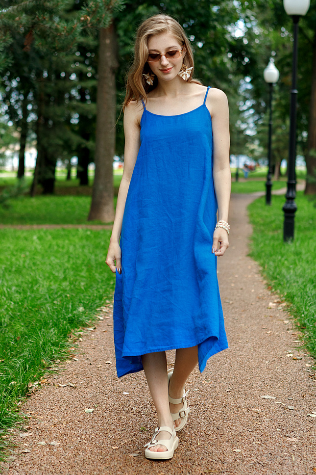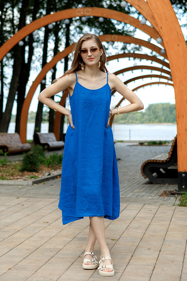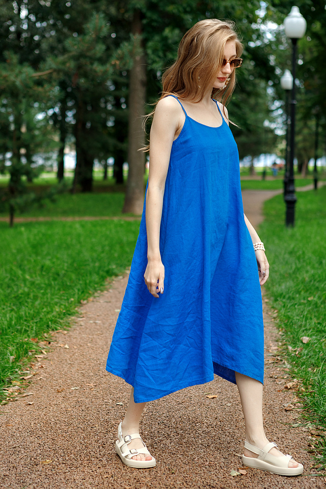 Сарафаны – это всегда про женственность и утончённость. Многообразие фасонов и стилей позволяют продемонстрировать свою индивидуальность. Сарафан легко комплектовать различными аксессуарами и обувью. Как единица гардероба – он очень функционален, а в жаркий летний период просто незаменим. Уверены, мы вас убедили в необходимости присмотреться к представленной модели сарафана! Парящий А – силуэт скроет все несовершенства фигуры, даря вам комфортное ношение. Глубокие складки натурального льна выглядят благородно. Ассиметричный нижний срез очень хорошо визуально вытягивает силуэт, делая его максимально стройным. Тонкая бретель позволяет продемонстрировать нежные и хрупкие силуэтные линии плеч и декольте. На бретели предусмотрена регулировка по длине, что очень удобно для женщин и девушек самого разного роста. Минималистический характер сарафана позволяет сконцентрировать всё внимание на естественной и самобытной женской красоте. А цветовая палитра позволит каждой из вас выбрать именно «свой» сарафан!