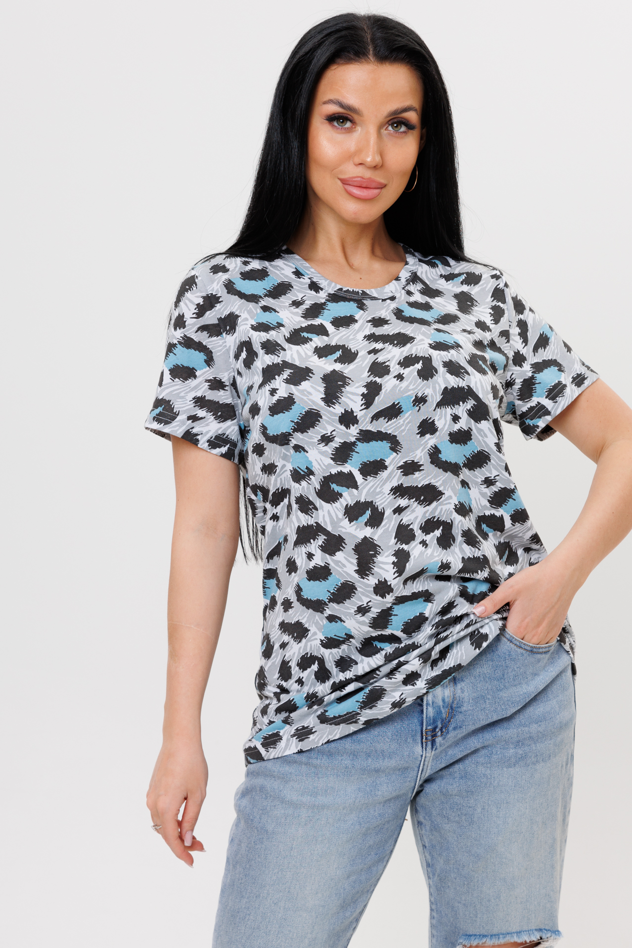 Футболка с анималистическим принтом сшита из 100 % трикотажного хлопкового полотна. Футболка имеет округлый вырез и короткие рукава. Леопардовый принт придает изделию оригинальность. Футболка прекрасно будет смотреться как заправленная, так и навыпуск. Размерный ряд представлен от 50 до 60 размера. Она подойдет для занятия спортом, сна, дома, офиса, прогулок и отдыха.