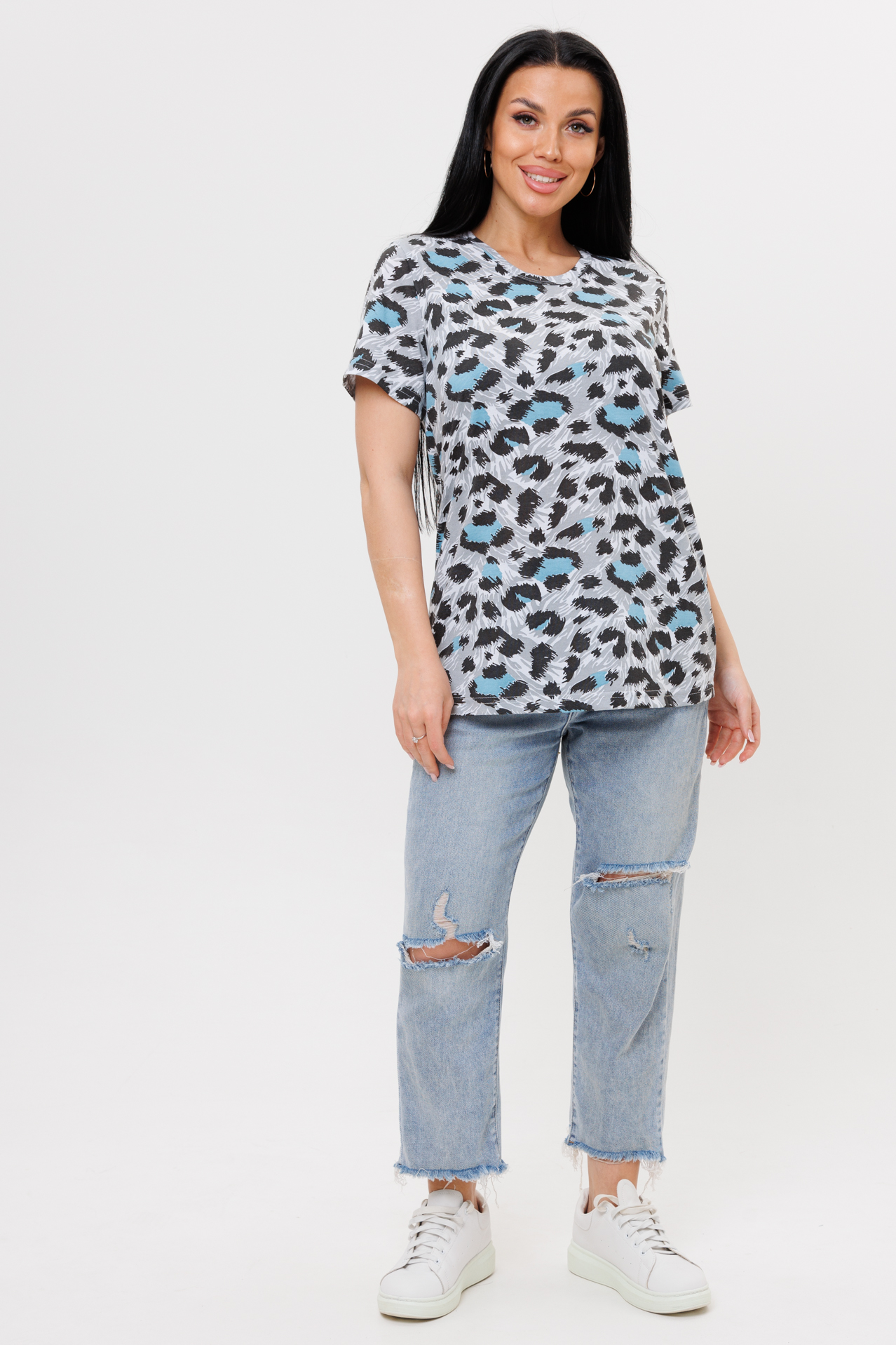 Футболка с анималистическим принтом сшита из 100 % трикотажного хлопкового полотна. Футболка имеет округлый вырез и короткие рукава. Леопардовый принт придает изделию оригинальность. Футболка прекрасно будет смотреться как заправленная, так и навыпуск. Размерный ряд представлен от 50 до 60 размера. Она подойдет для занятия спортом, сна, дома, офиса, прогулок и отдыха.