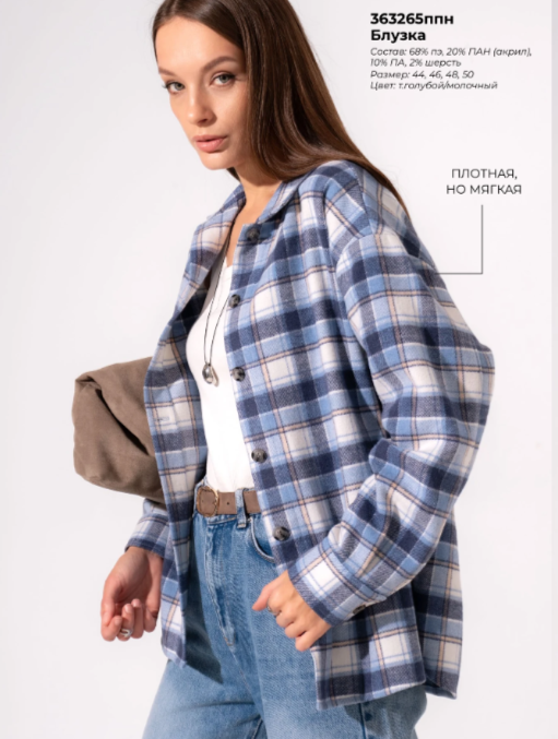 "Описание: Блузка из текстильного полотна поплин, прямого силуэта на пуговицах с отложным воротником. По борту планка с пуговицами, по спинке кокетка. Длинный рукав со спущенной линией плеча. По низу рукава притачной манжет с пуговицей. Низ изделия фигурный.