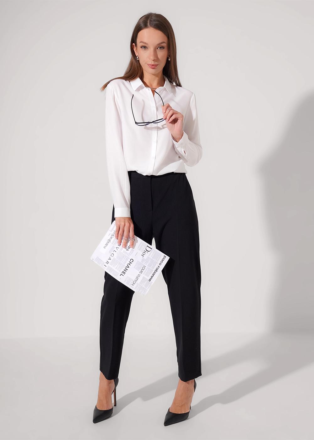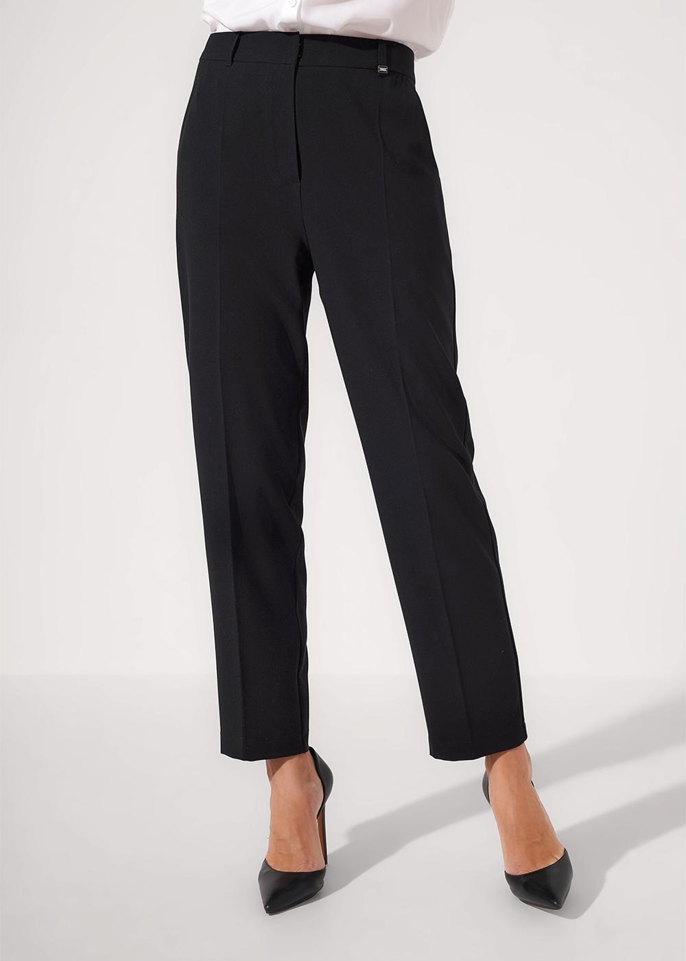 "Описание: Брюки прямые из трикотажного полотна плотное пике. Притачной пояс со шлёвками, по спинке на внутренней резинке. Функциональный гульфик с застежкой на молнию и крючок. Боковые карманы с отрезным бочком. Спереди заутюженные стрелки.