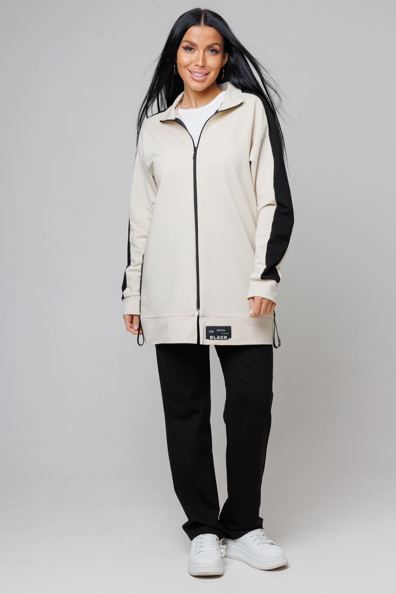 Костюм, выполненный из футера 2-х нитки, состоит их брюк и удлиненной олимпийки.